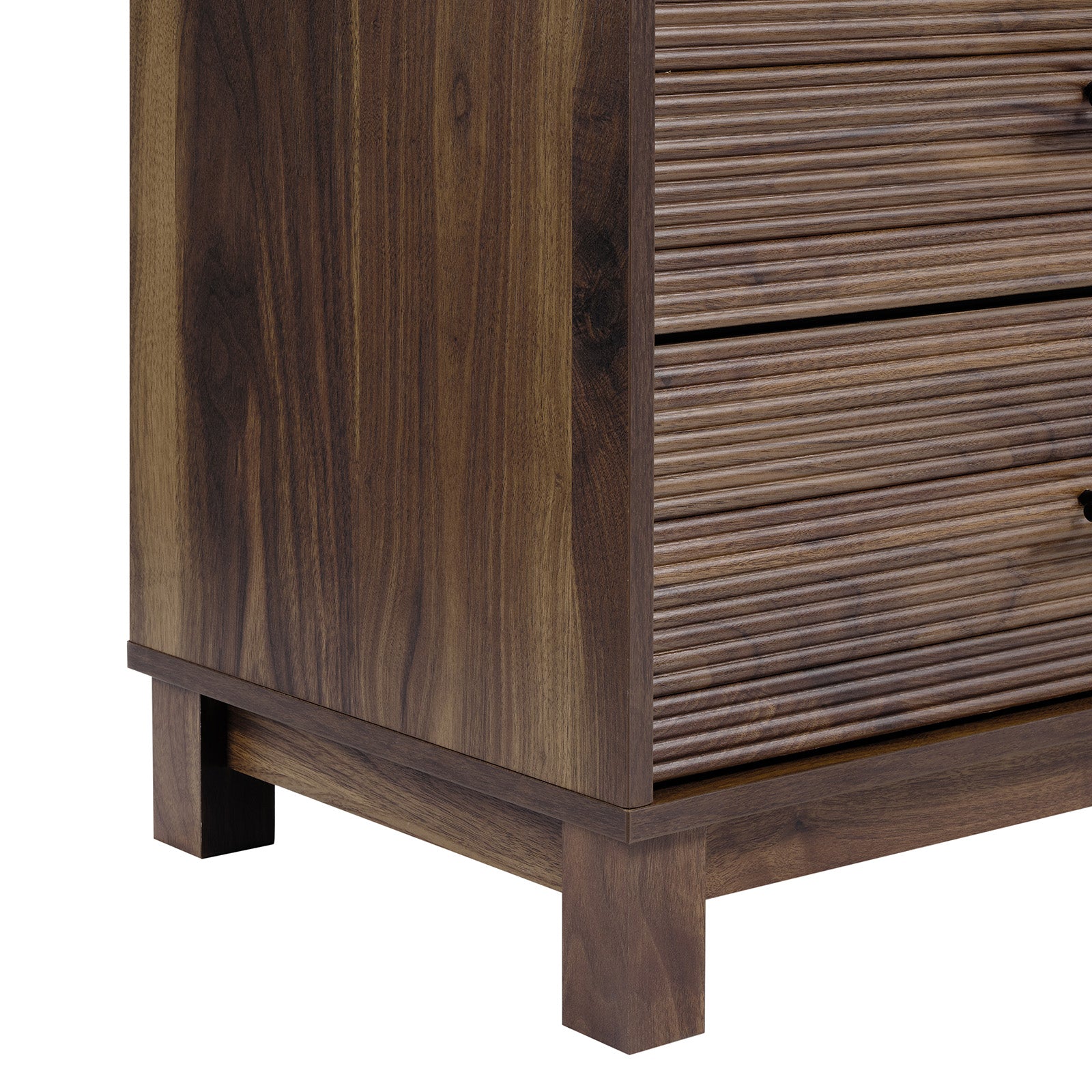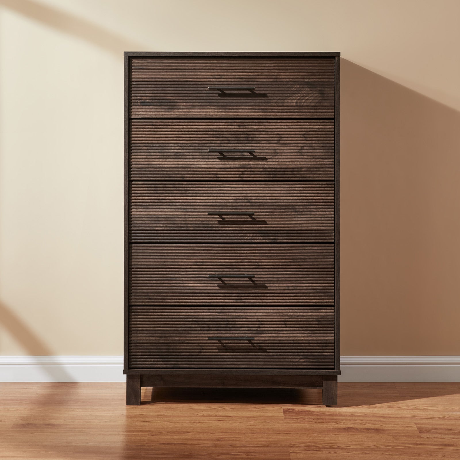 CHITOOMA Fluted Dresser for Bedroom, Modern Wooden 5 Drawer Tall Dresser, Chest of Drawers, Storage Cabine Living Room Hallway, Walnut