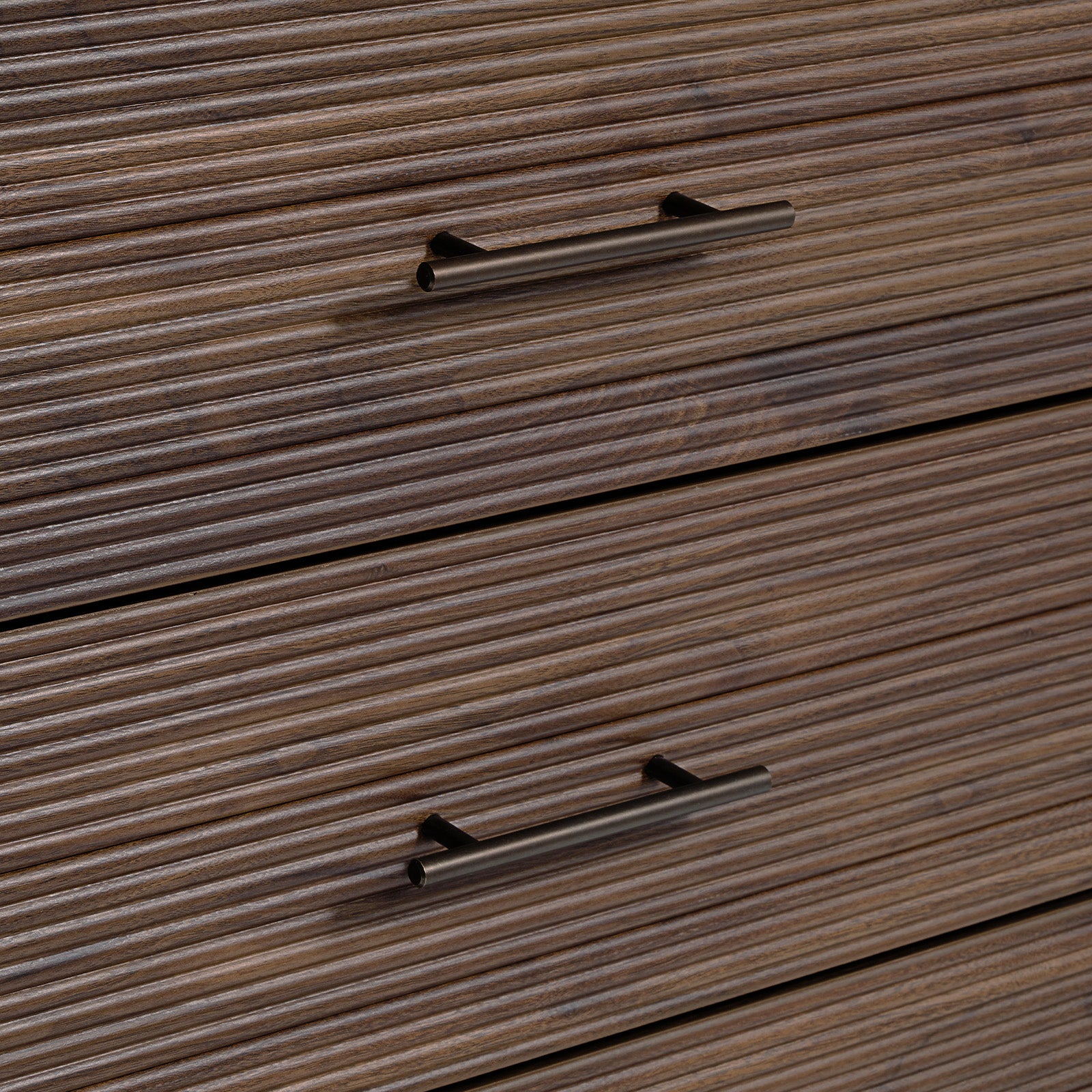 - The dresser features elegantly textured striped drawer fronts that elevate its visual appeal. This subtle design detail adds depth and sophistication, bringing a modern yet natural charm to any living space while maintaining a clean and minimalist aesthetic.
