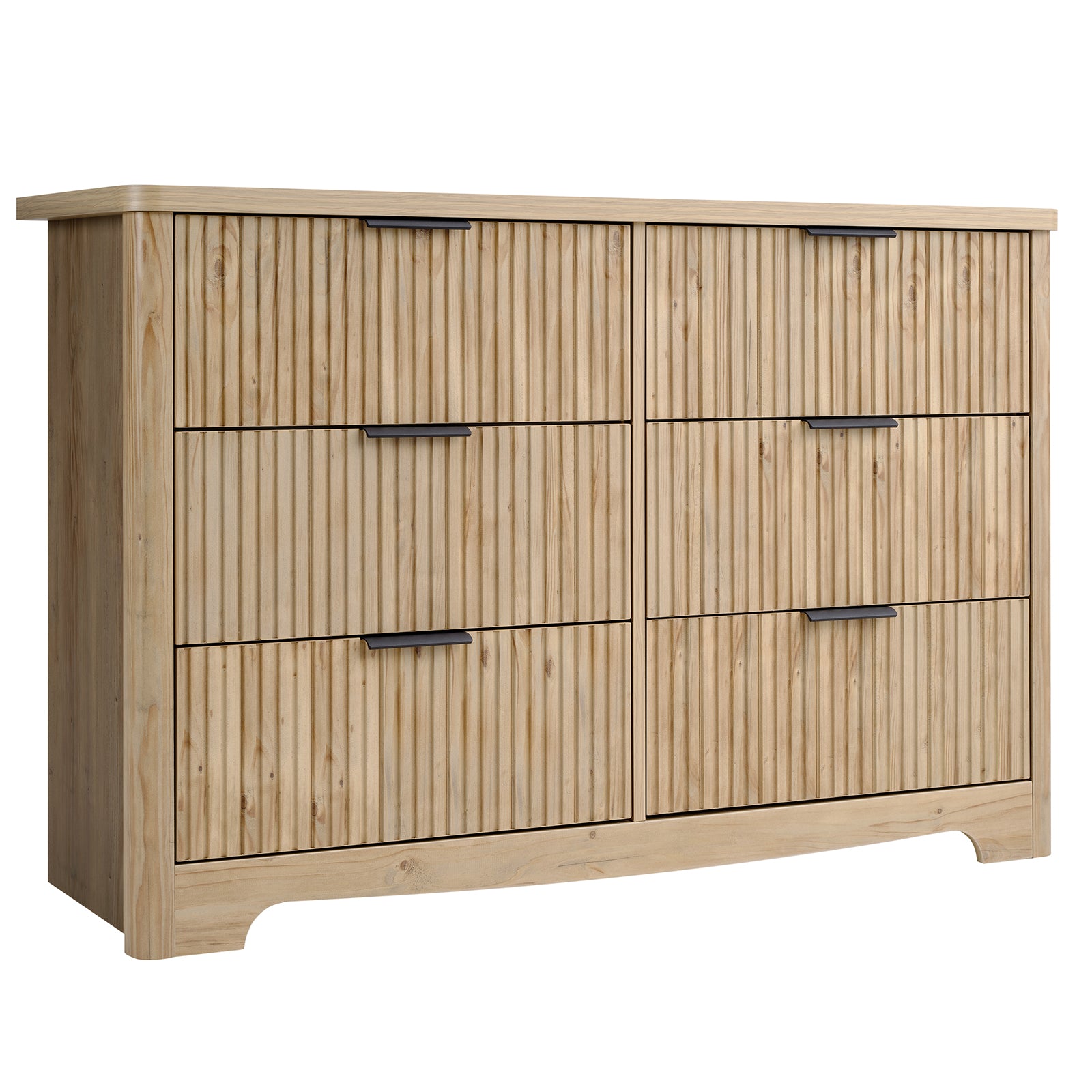 Upgrade your home with this modern 6-drawer natural dresser, designed to deliver both style and smart storage. With six oversized drawers (12.9" x 22.4" x 6.3"), this spacious chest offers ample room for clothing, accessories, and everyday essentials. The wide, flat top surface is perfect for showcasing lamps, plants, or your favorite home décor.