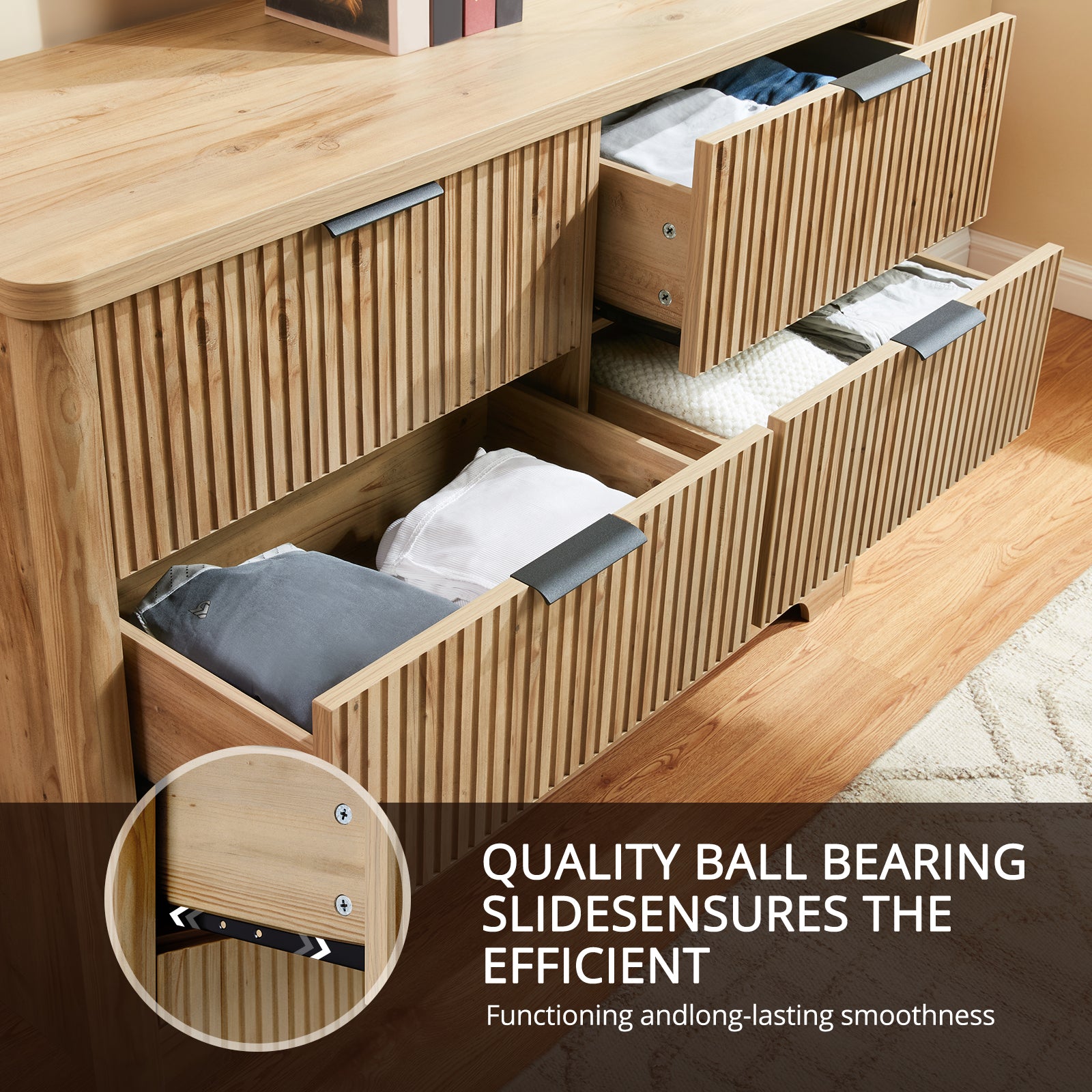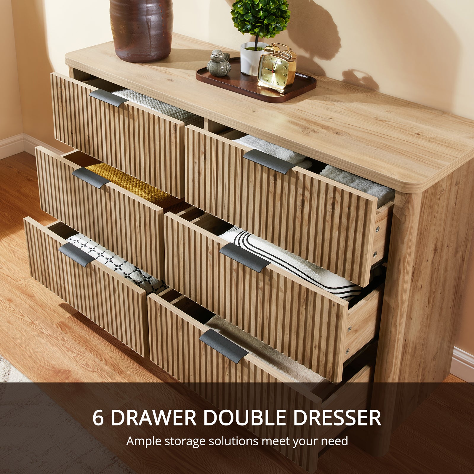 CHITOOMA Fluted Dresser for Bedroom, Modern Wooden 6 Drawer Dresser, Storage Cabine Chest of Drawers for Living Room Hallway, Natural