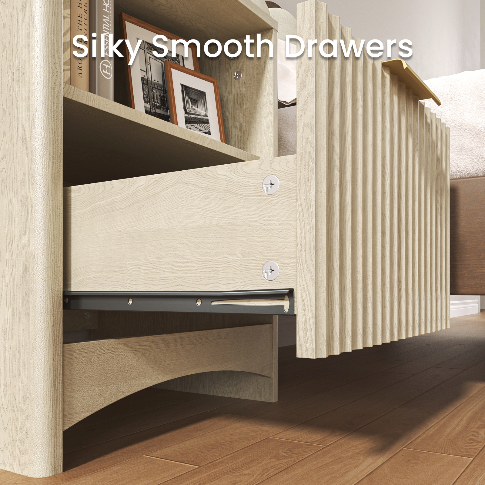 - Elegant Fluted Drawer Fronts: The unique vertical stripe detailing on both drawers adds modern texture and charm, giving this nightstand a high-end designer look that elevates any space.