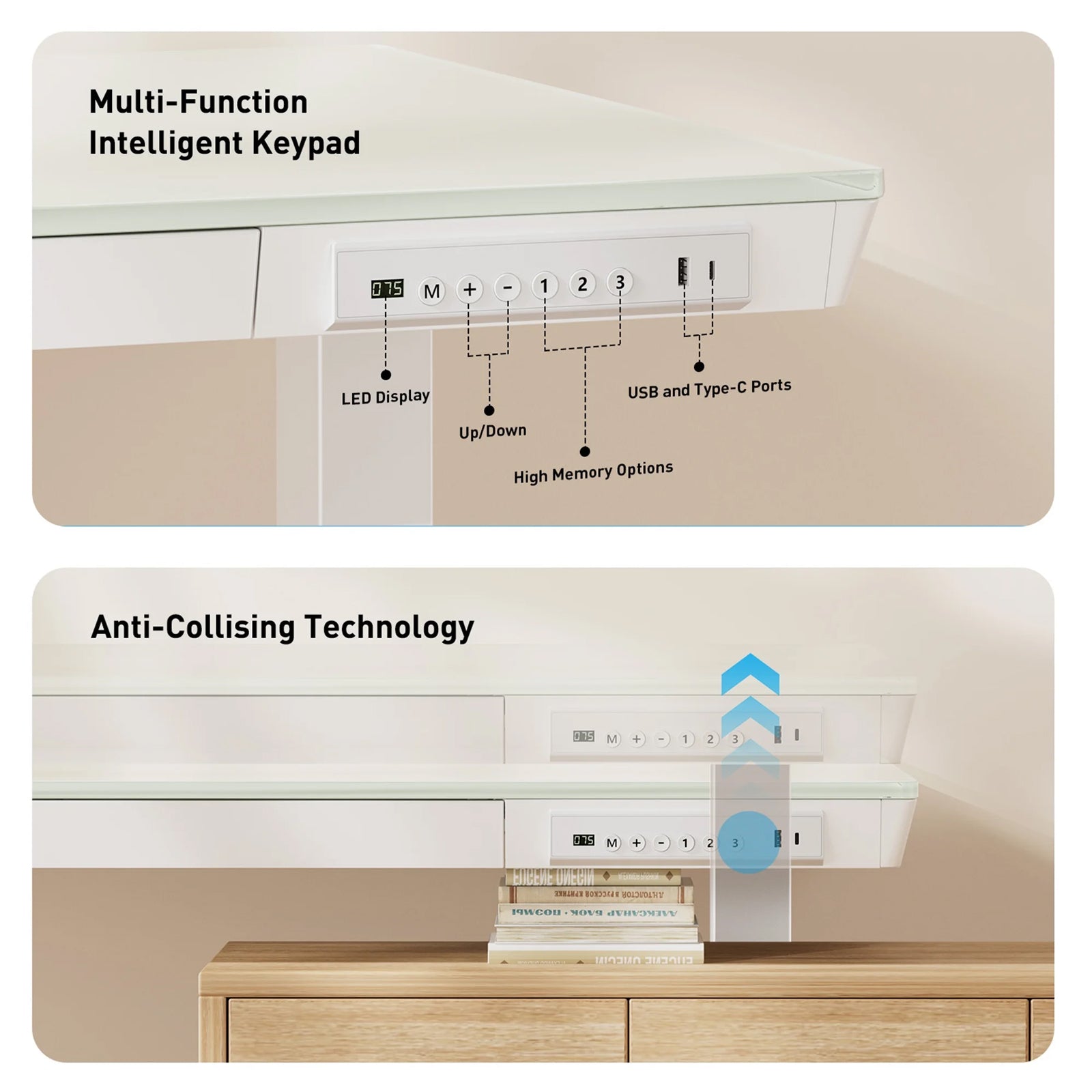 - Anti-Collision System: Equipped with a collision detection feature that stops and retracts the desk when obstacles are encountered during height adjustment, ensuring safety.