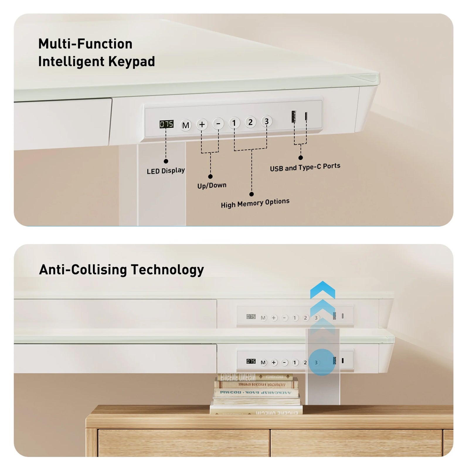 • Electric Desk Adjustable Height: Effortlessly adjust your desk height with a smooth, electric motor for comfortable sitting and standing positions.