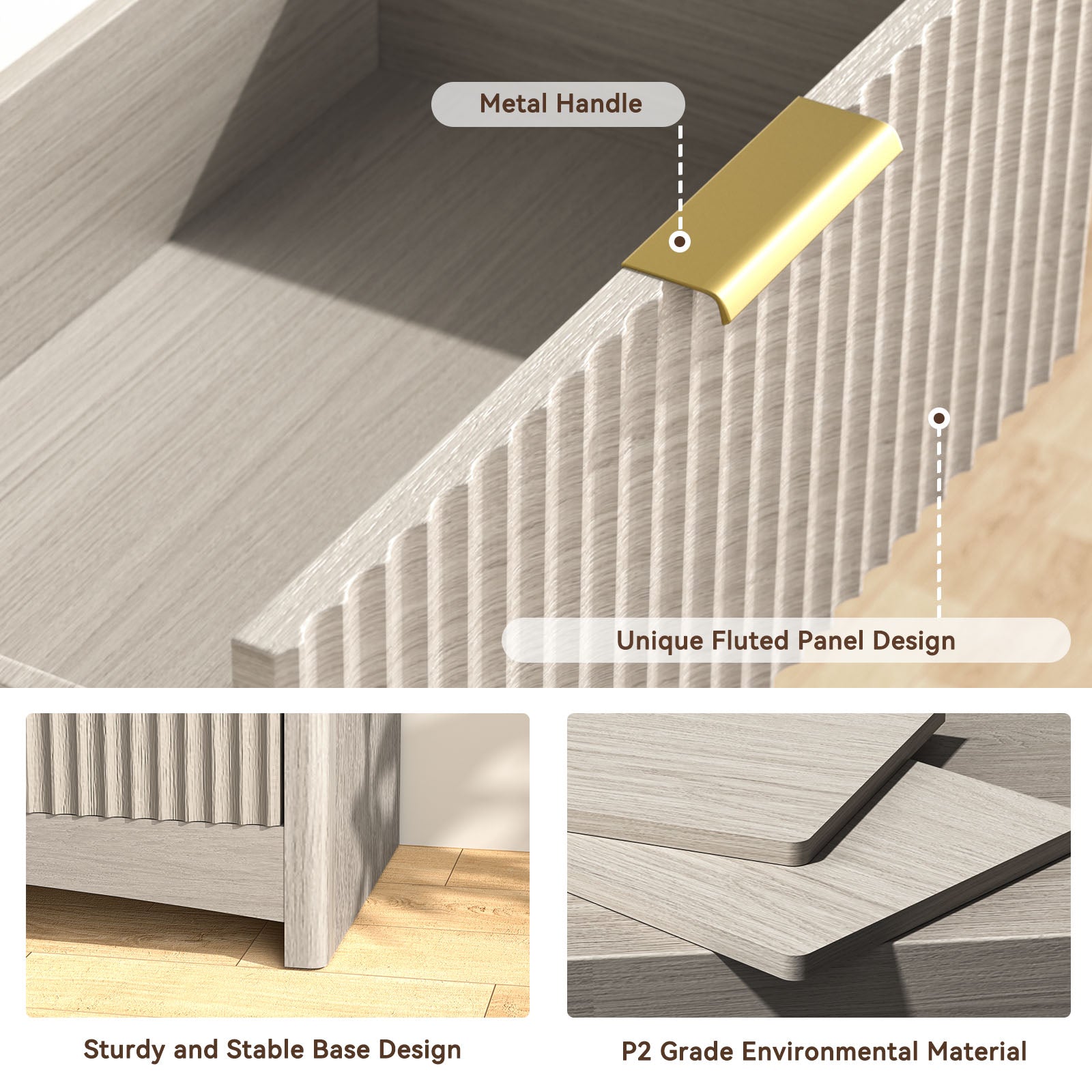 - Modern Fluted Design – Textured fluted drawer fronts and sleek gold handles add a stylish, upscale touch to any room.