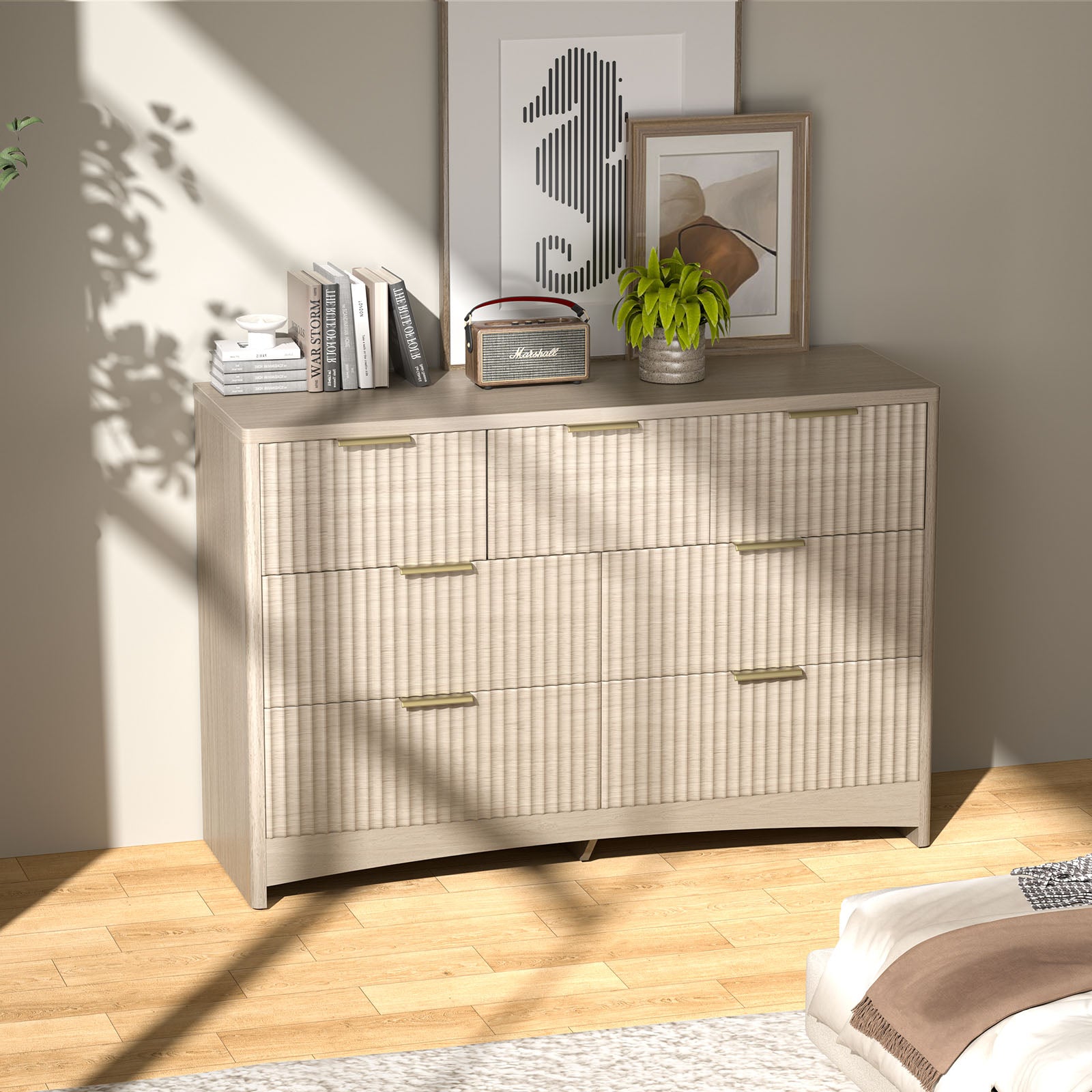 CHITOOMA Modern 7 Drawer Dresser, Wide Fluted Wood Storage Cabinet with Gold Handles, Chest of Drawers for Bedroom or Living Room, Natural