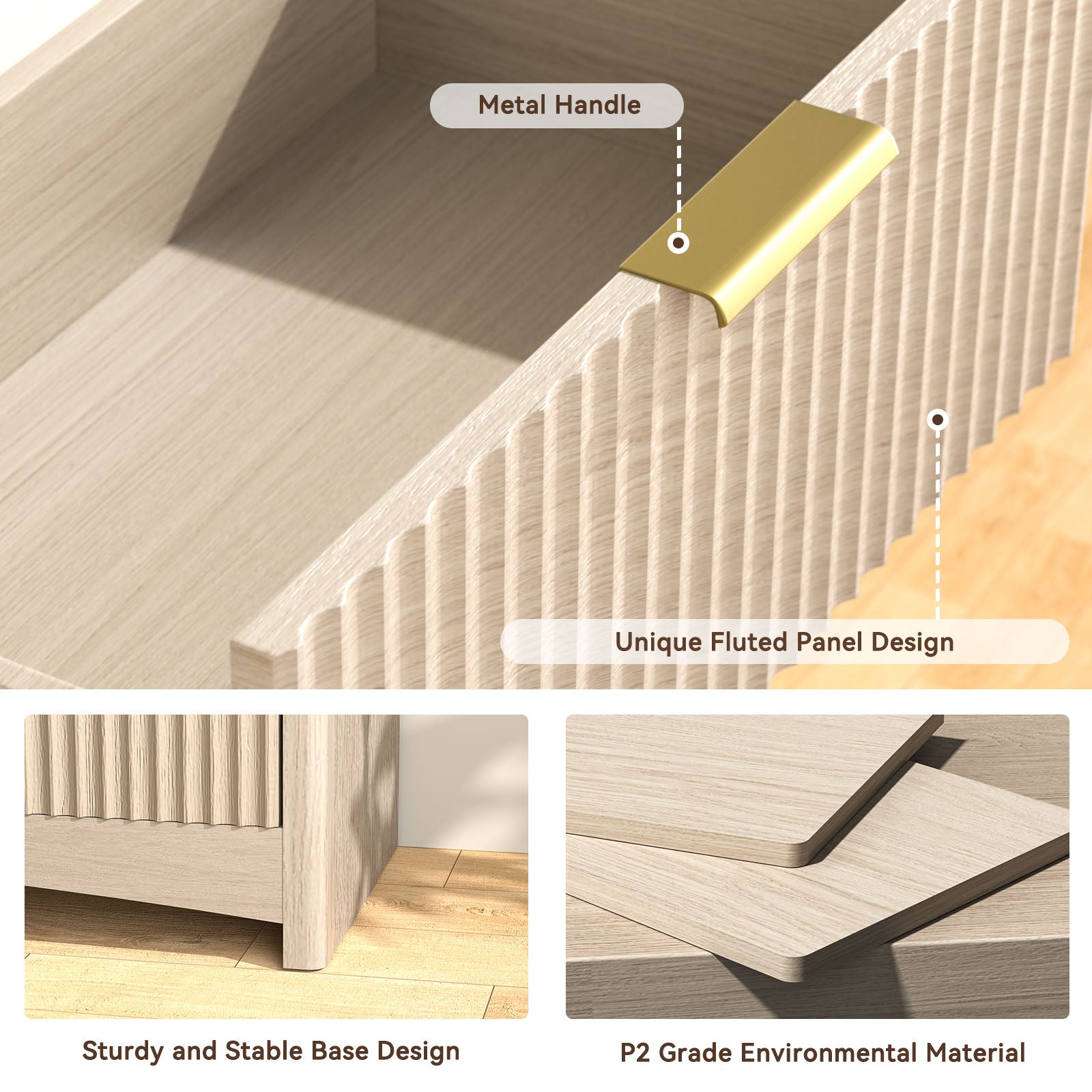 - Modern Fluted Design – Textured fluted drawer fronts and sleek gold handles add a stylish, upscale touch to any room.