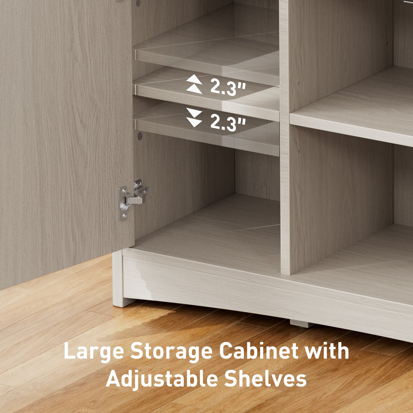 【Multi-Functional Compartments】 The 47.2" × 15.5" tabletop can hold coffee machines, microwaves, or decorative items, while the lower compartments provide easy storage for dinnerware, beverages, and daily essentials, meeting everyday needs efficiently.