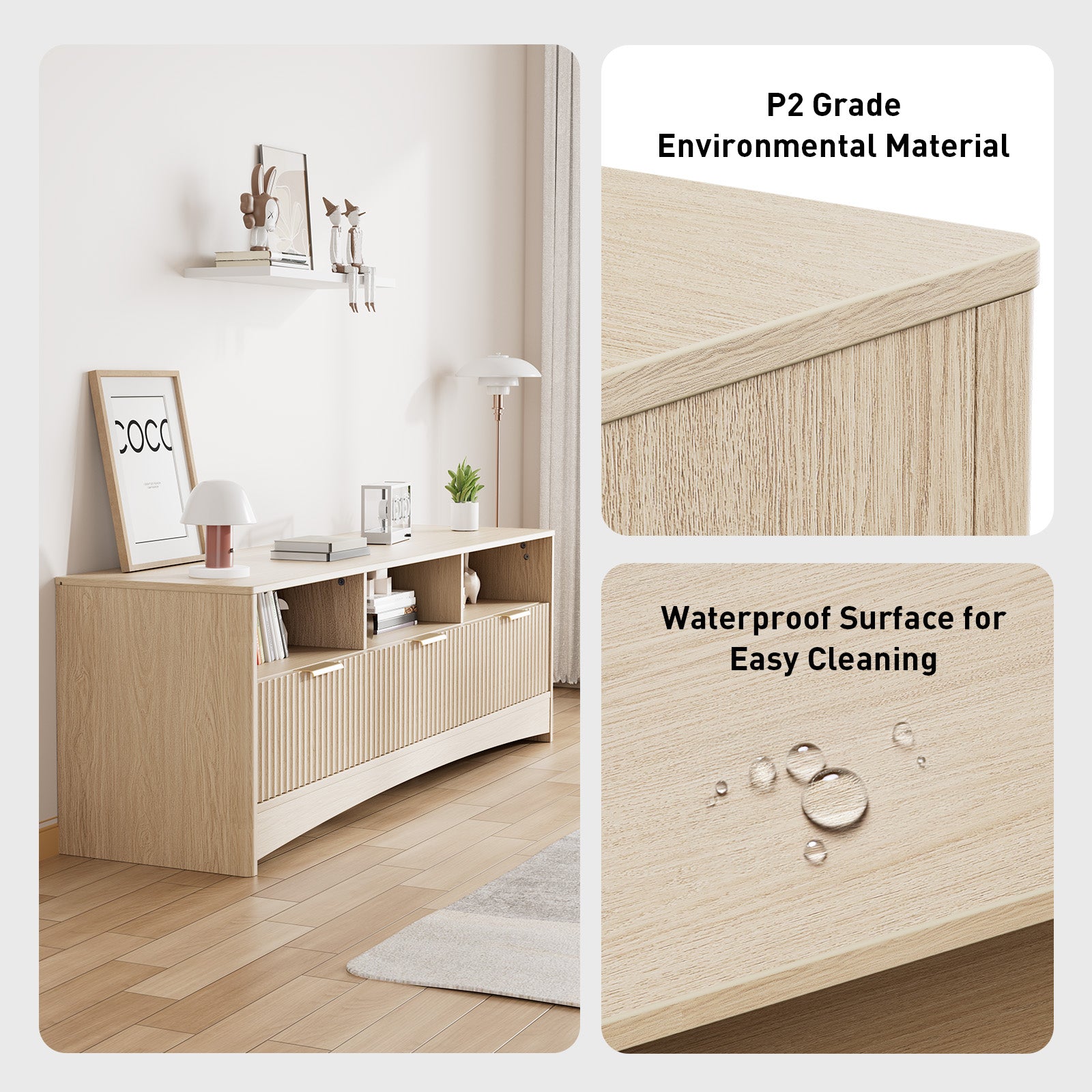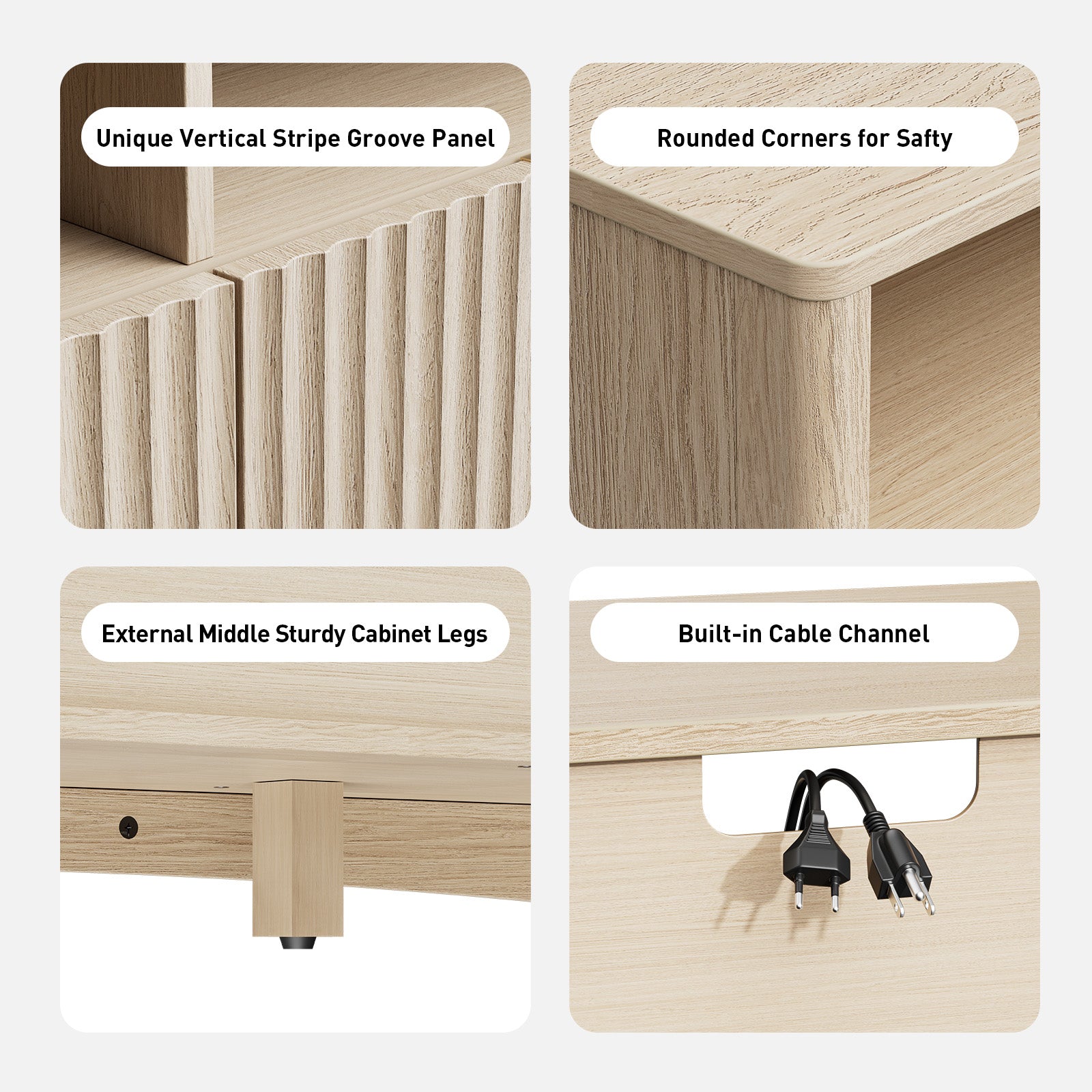 CHITOOMA Modern TV Stand for TVs up to 65", Fluted Media Console with Open Shelves & Hidden Storage Cabinet, Entertainment Center for Living Room, Natural