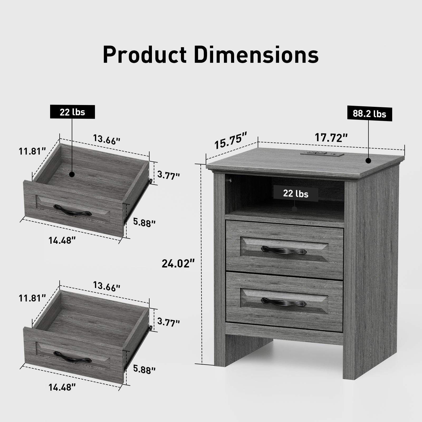 - Integrated Charging Station: Stay connected with ease—this nightstand includes 2 AC outlets, 1 USB port, and 1 Type-C port on the tabletop for fast, convenient charging of multiple devices at once.
