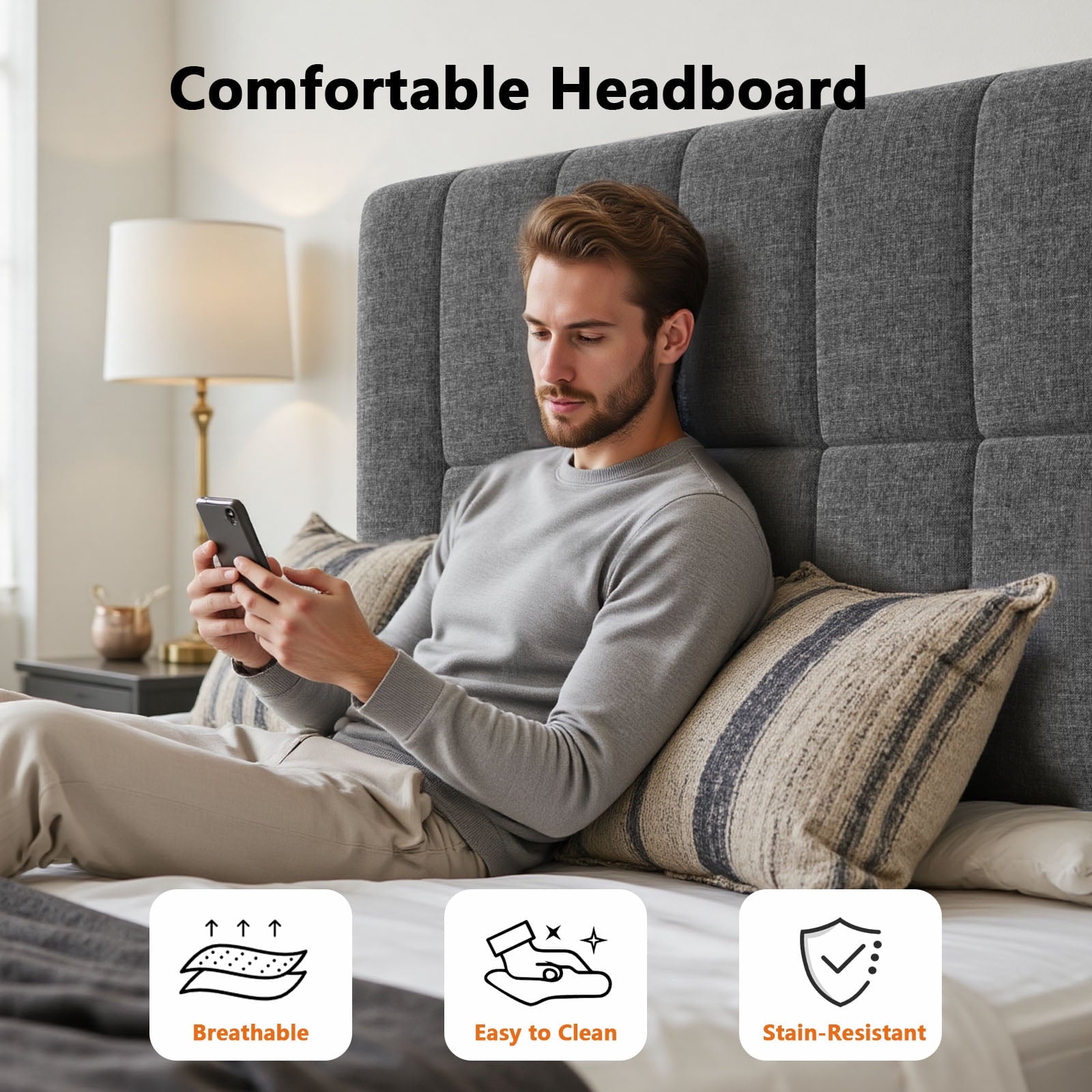 - Adjustable Headboard: Height adjustable to 39", 41", or 43", perfectly fitting mattresses from 6"–14" thick.