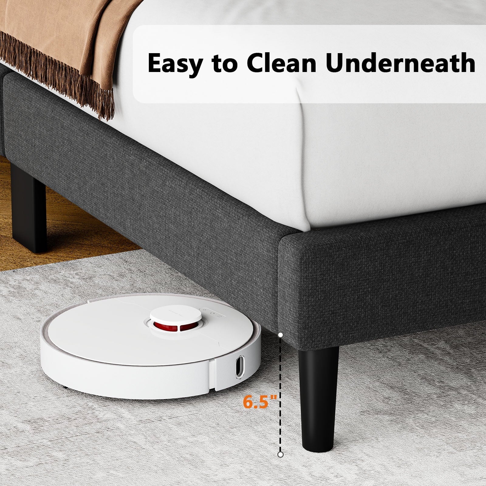 - Underbed Storage: 6.5" clearance offers extra storage space and easy cleaning access for robot vacuums.