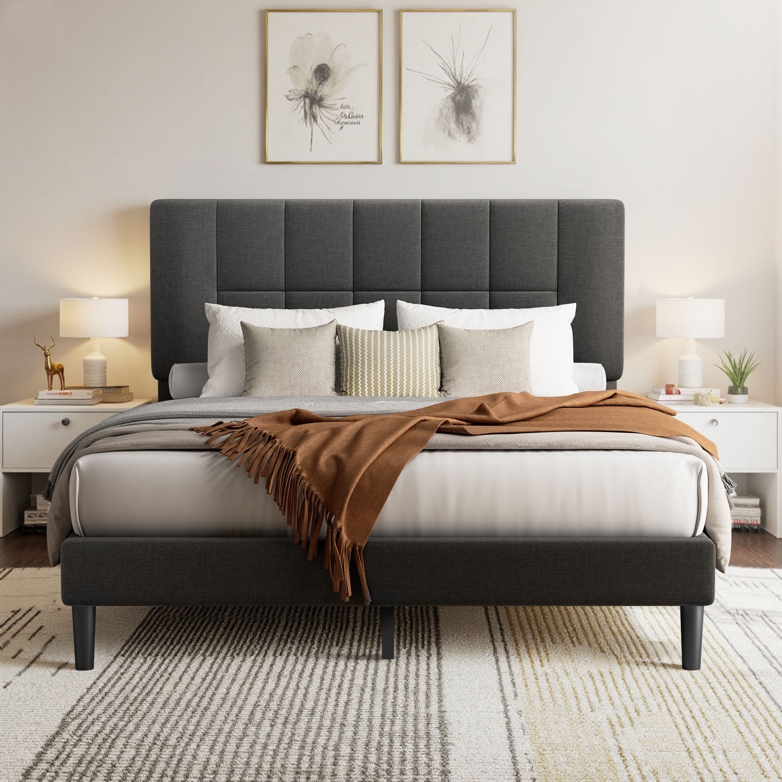 - No Box Spring Required: This queen bed frame with headboard, which is directly applicable to any mattress: spring, memory foam, latex or hybrid mattress, and does not require bulky box springs.