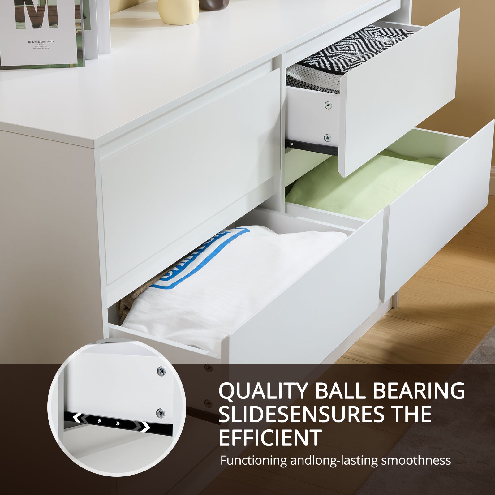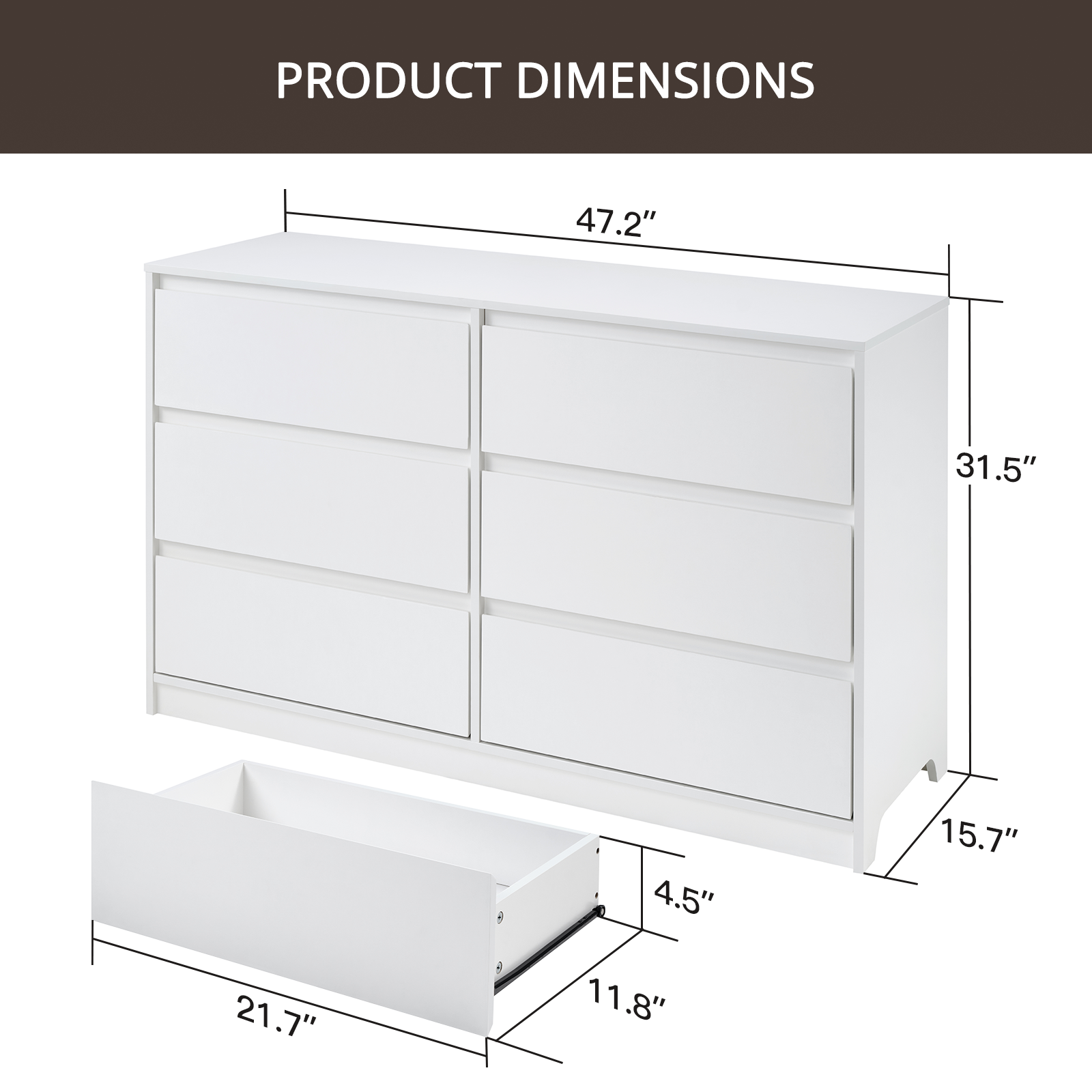 Upgrade your home with this modern 6-drawer White dresser, designed to deliver both style and smart storage. With six oversized drawers (12.9" x 22.4" x 6.3"), this spacious chest offers ample room for clothing, accessories, and everyday essentials. The wide, flat top surface is perfect for showcasing lamps, plants, or your favorite home décor.