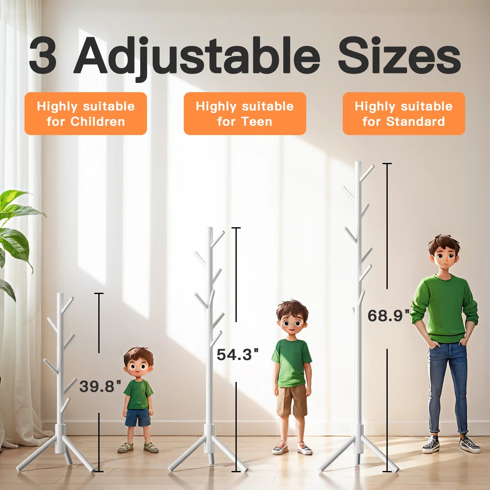 - HEIGHT ADJUSTMENT: This coat rack features 3 height installation and can customize the rack height and hooks as you like. 2-section heigth (39.8?) can be put at beside, 3 sections height (54.3?) is for for a kid use, 4-section height (68.9?) is for adult use