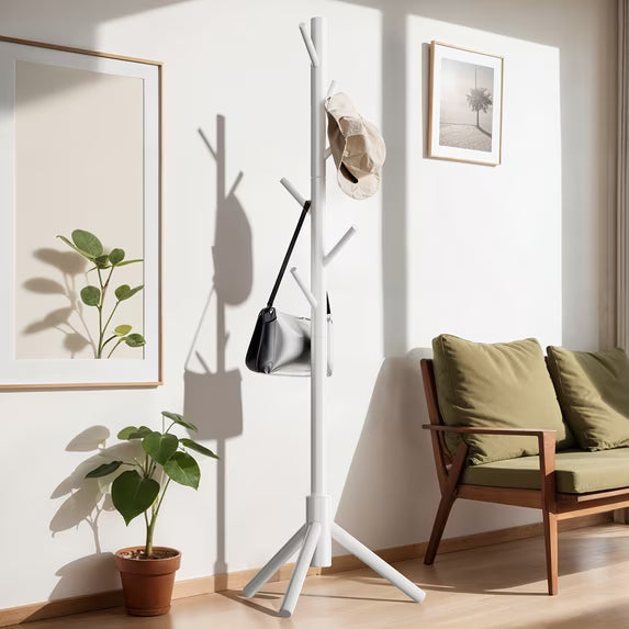 - ENOUGH STORAGE SPACE: This coat rack stand features 8 sturdy hooks that allows you to hang hats, scarves, backpacks, ties, and umbrellas or any other things you want