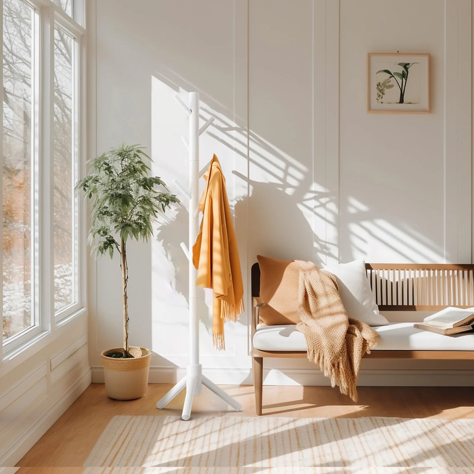 This coat rack is a must-have for your entryway. Crafted from select, solid pine wood, this coat rack stand is built for durability. Eight clothing hooks provide you with plenty of space to hang jackets, bags, scarves, hats, and more.