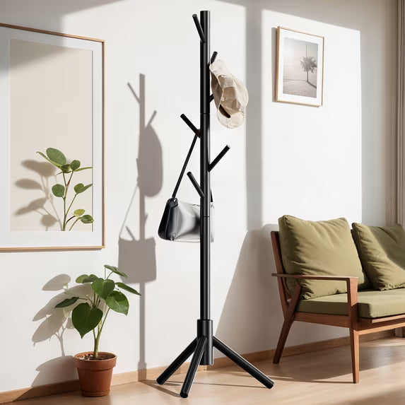 - ENOUGH STORAGE SPACE: This coat rack stand features 8 sturdy hooks that allows you to hang hats, scarves, backpacks, ties, and umbrellas or any other things you want