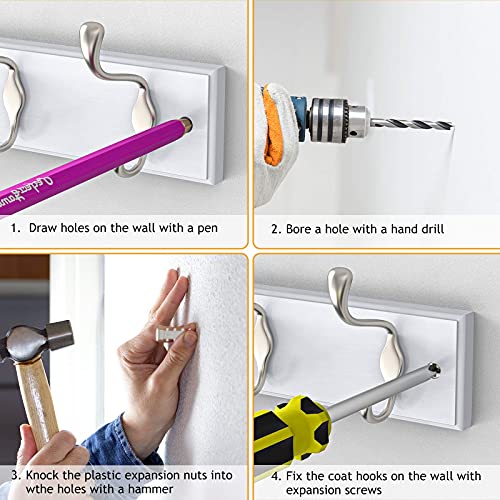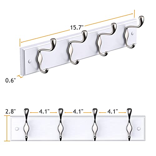 - Modern Coat Hooks for Wall: White smooth MDF board and 4 sturdy zinc hooks match all kinds of home décor. Comes with 2 screw caps, which cover the holes for a flawless look. Veneer type finish, so it's easy to keep clean and no need to worry about mildew.