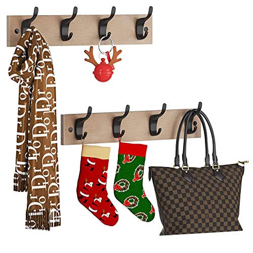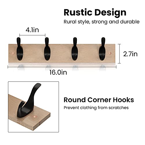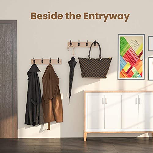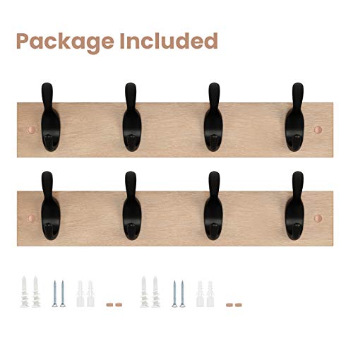 Coat Rack Wall Mount 2 Packs, Entryway Coat Rack with 4 Wall Hooks, Coat Hat Hanger for Wall Organized and Storage in Living Room, Bedroom Light Brown AMCR02