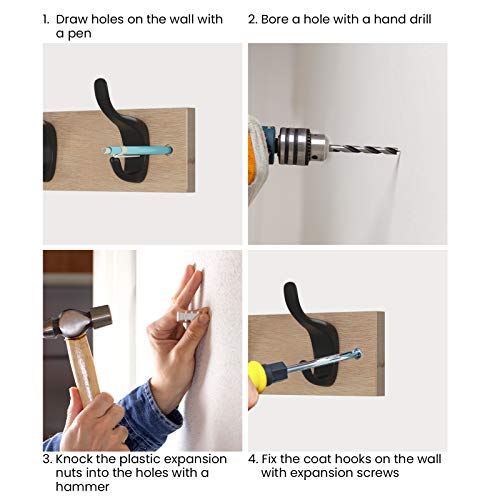 - Wall Mounted Coat Rack with Double Hooks: Designed with double corner hooks, our products create more storage space for you. You can hang your belongings on both up and down hooks. Round corner hooks prevent scratching your belongings.