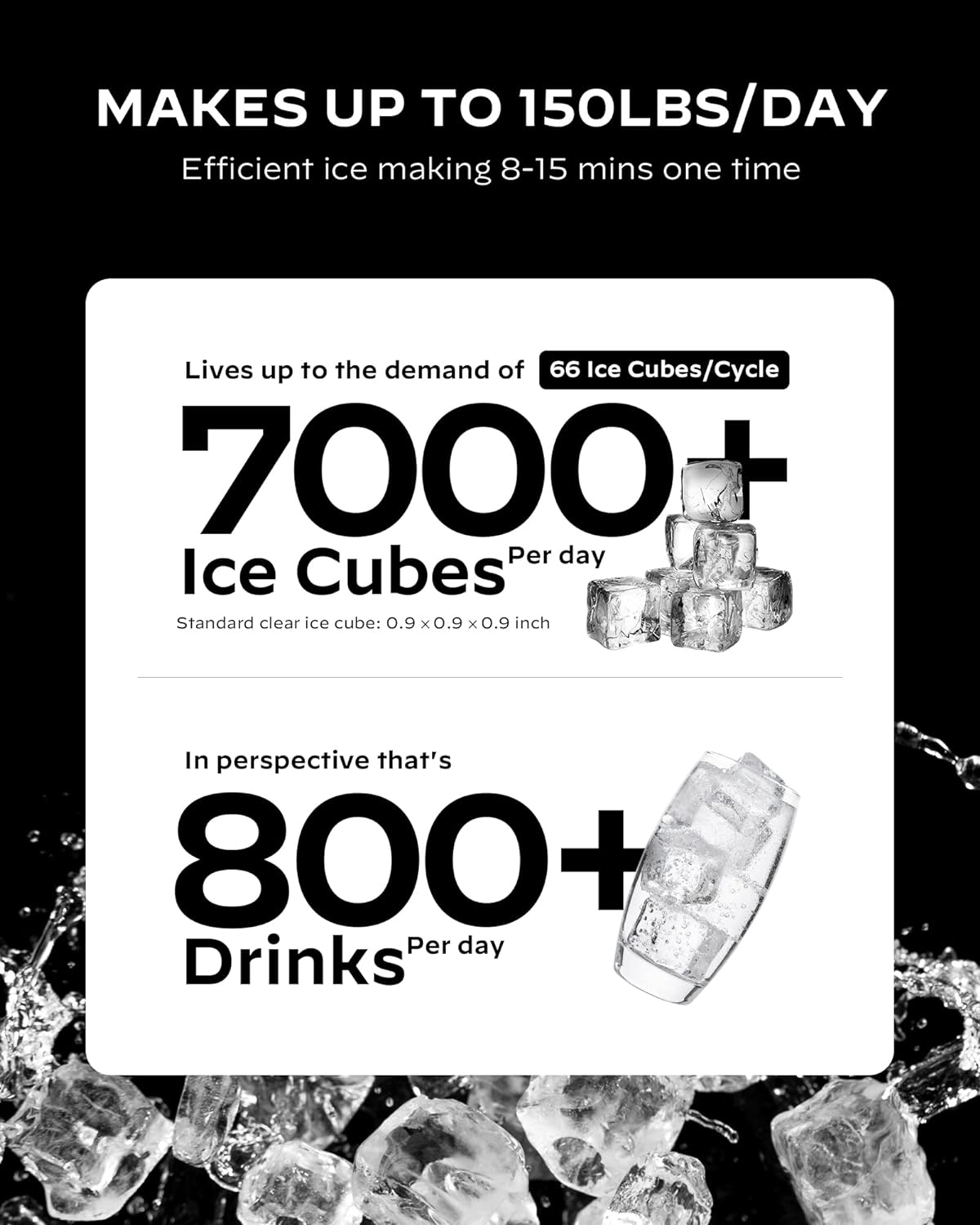 Large Ice Batches: Want to product large amounts of ice in minutes? The Silonn commercial ice maker ensures efficient ice making with only 8-15 minutes per cycle. The commercial ice machine makes 150 lbs of ice per day, enough to maintain the ice supply you need for high usage.