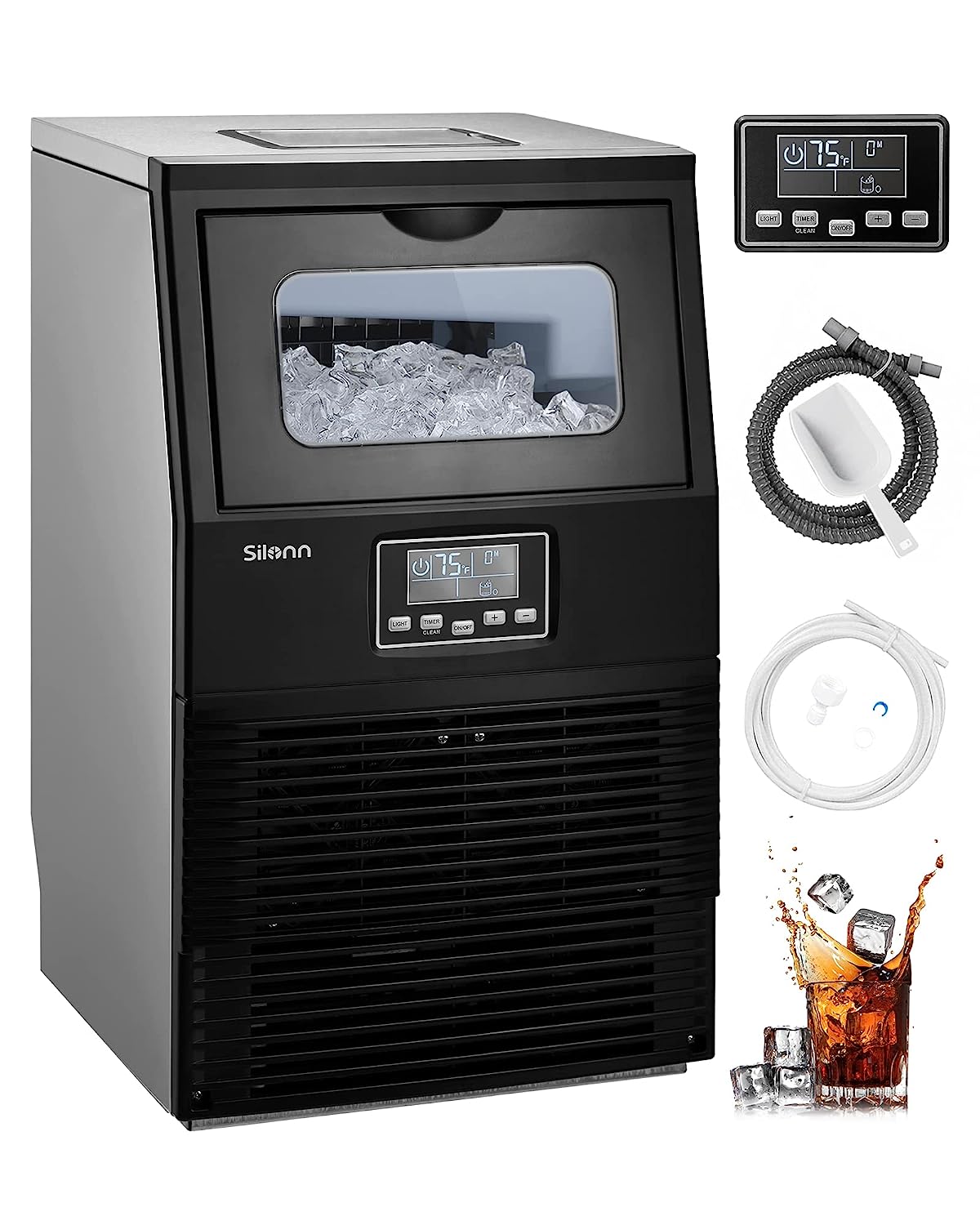 Perfect Ice Shape: The square ice cubes are slow-melting and fine in shape with pure clarity and density, popular for high-end bars, restaurants, and convenience stores. Use your ice maker to keep food fresh longer, make cold drinks, or chill beers and champagne.