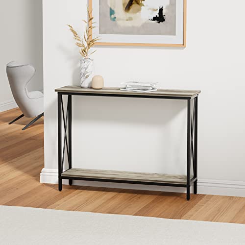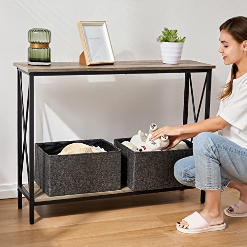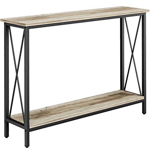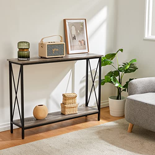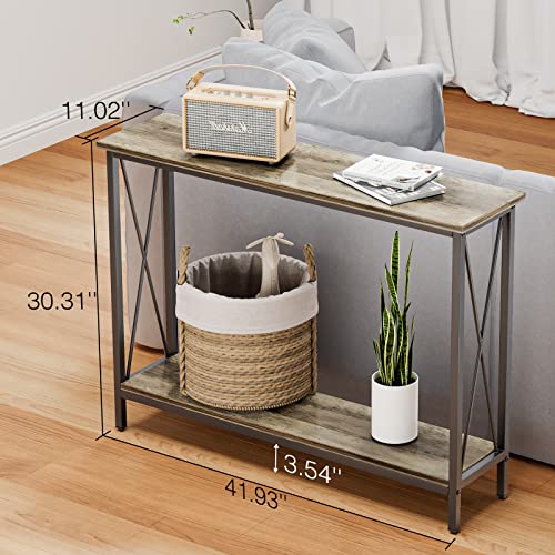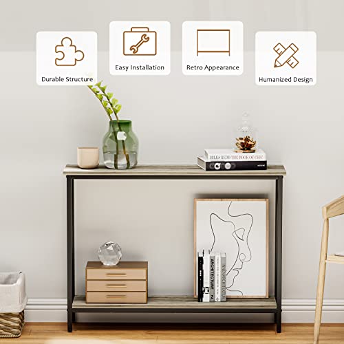 Console Table, Narrow Sofa Table with Shelves, 2 Tier Industrial Entryway Table w/Metal Frame for Hallway/Foyer/Corridor/Front Hall, 40 x 11.81 x 31.5 Inches -Greige and Black