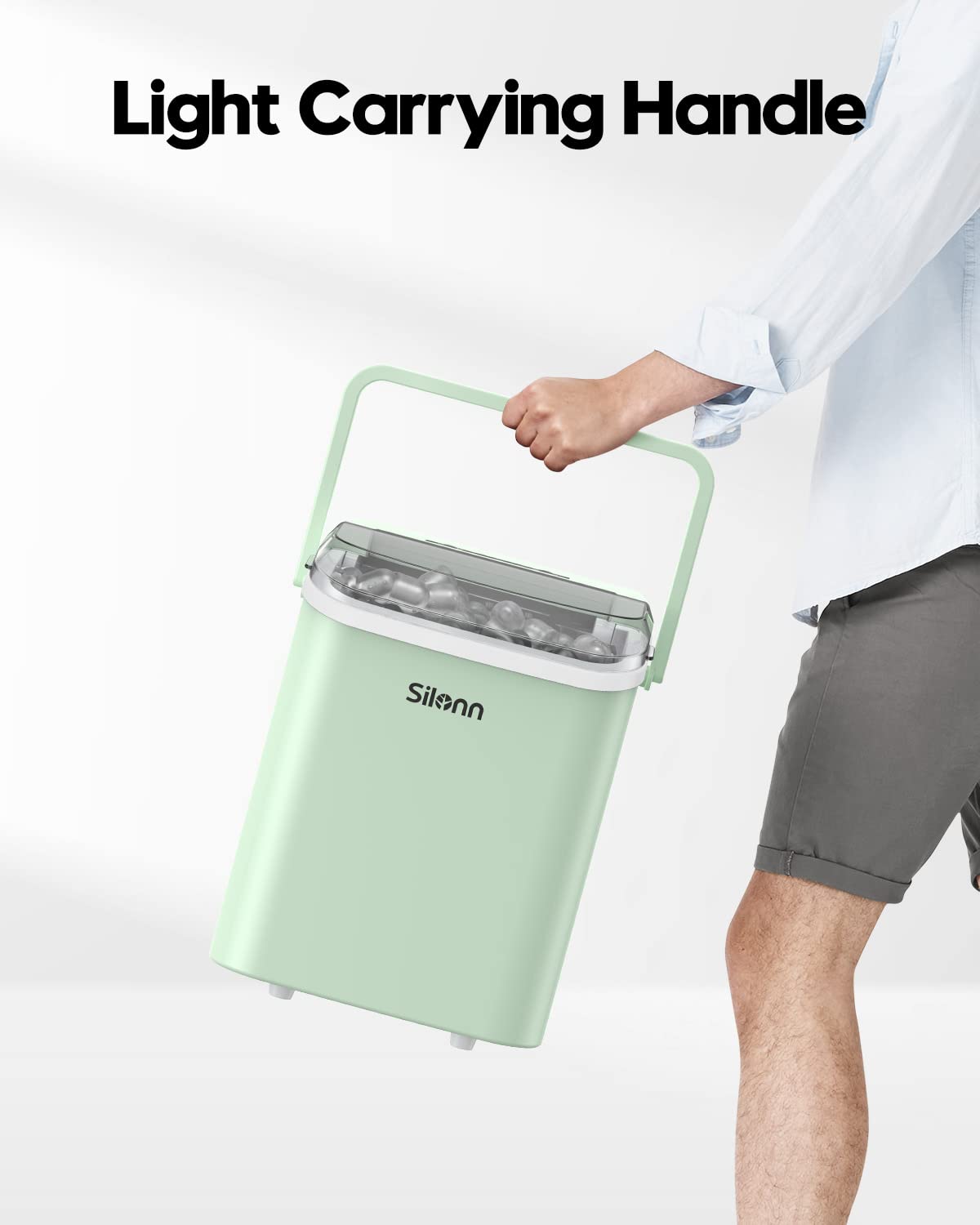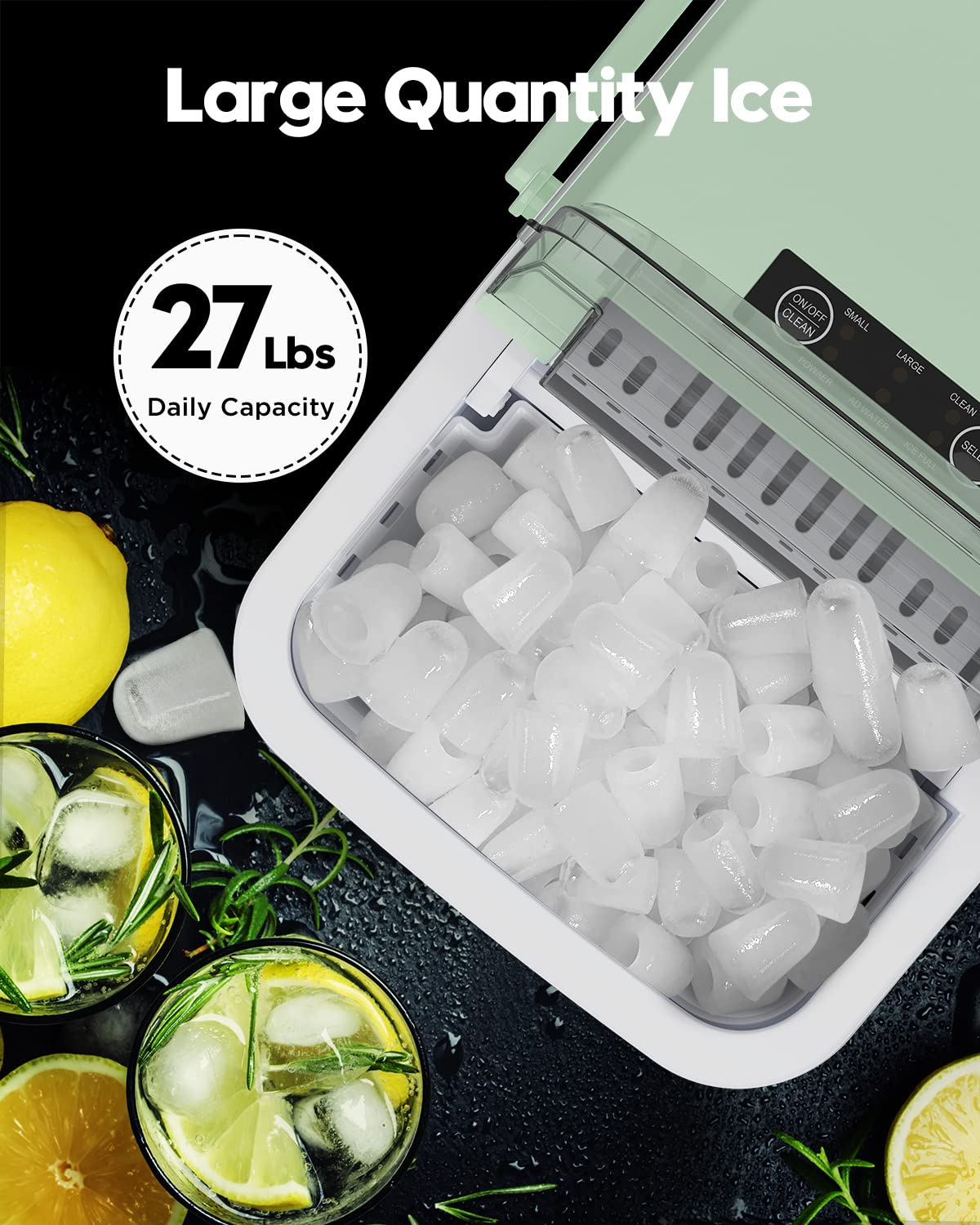 Countertop Ice Maker Machine with Handle, Portable Ice Makers, Makes up to 27 lbs. of Ice Per Day, 9 Cubes in 7 Mins, Ice Maker with Ice Scoop and Basket, Green, 12 x 9 x 12 inches (SLIM06)