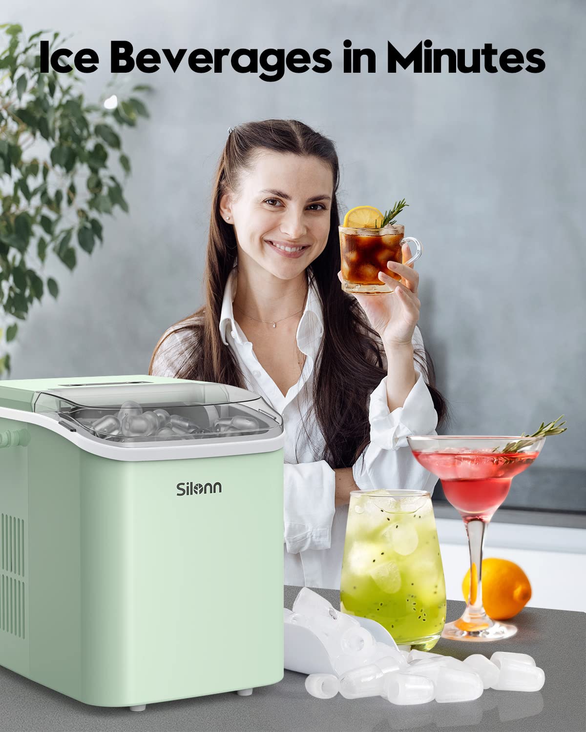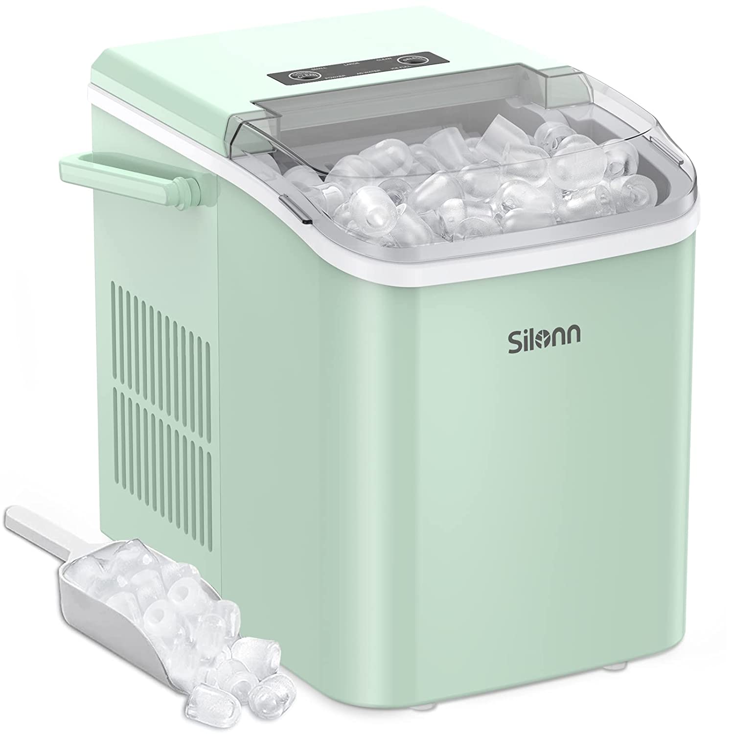 FAST ICE MAKER: With Silonn ice makers countertop, 9 bullet-shaped ice cubes can be produced rapidly in as little as 7 minutes. At home, ice is just one quick press of a button away!