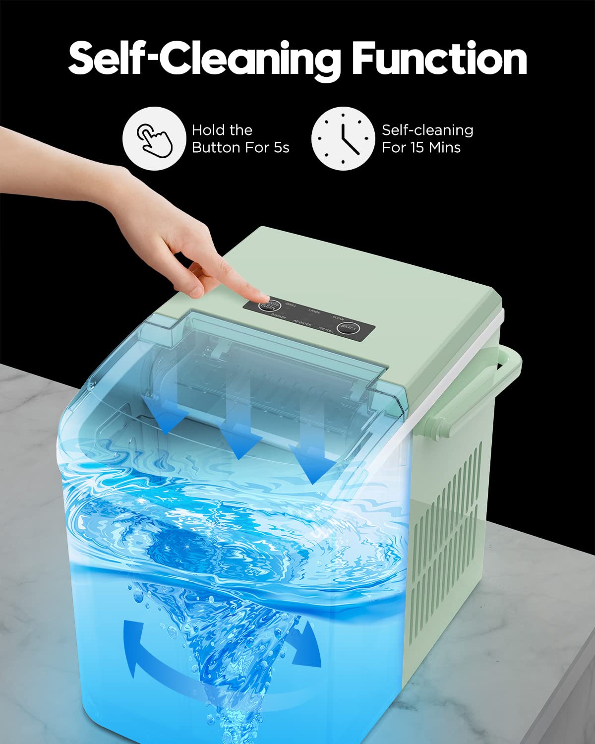 SELF-CLEANING FUNCTION: Hold the ON/OFF button for 5 seconds to start the self-cleaning process. Occasionally, self-clean your ice machine for healthier/fresher ice cubes.