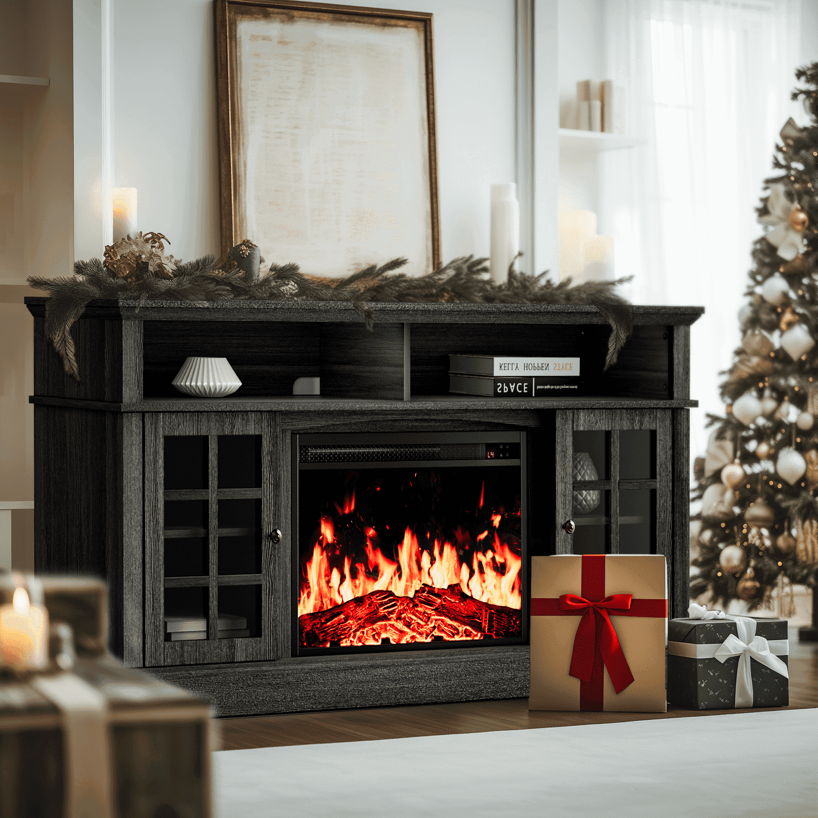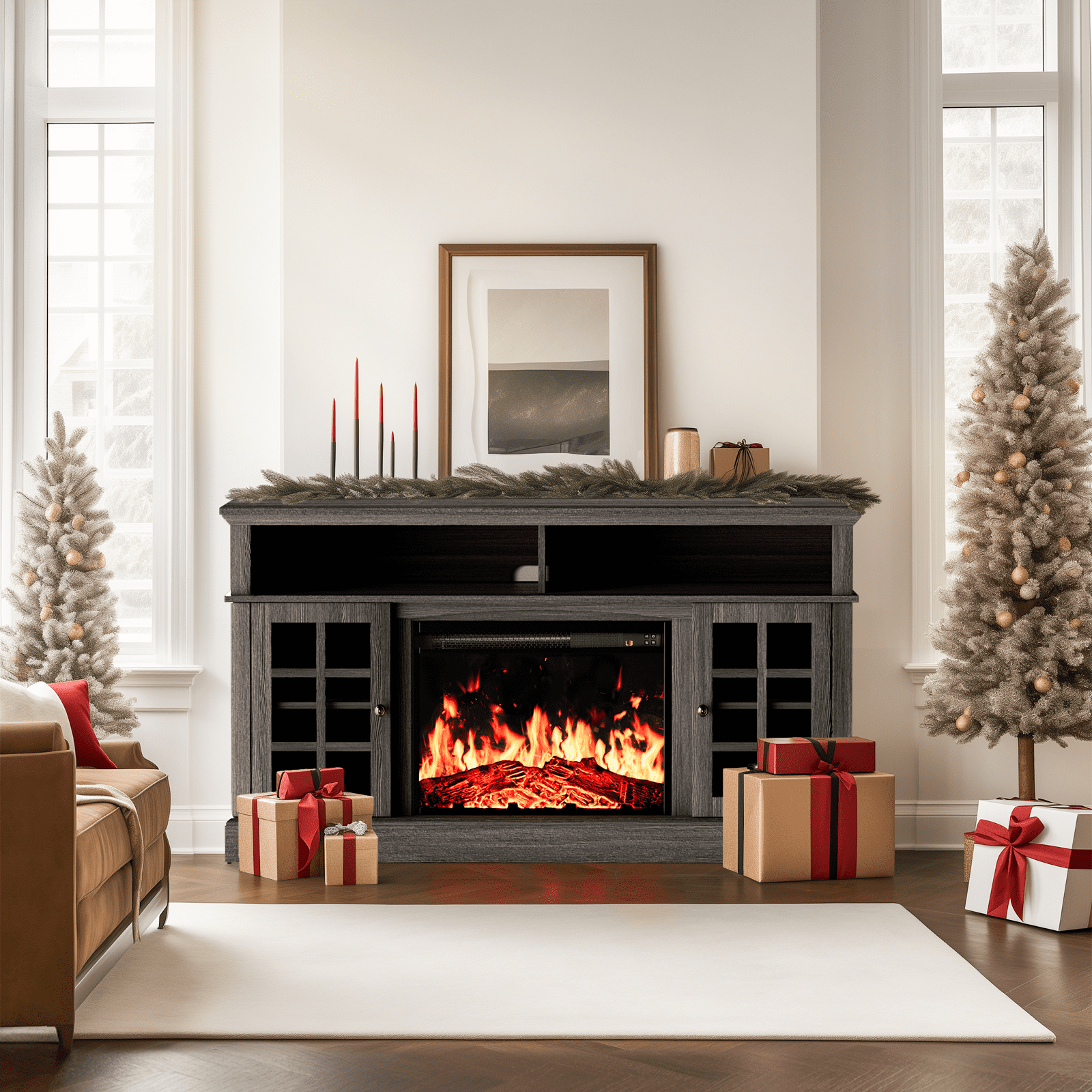 5- 2-in-1 Design: The fireplace entertainment center is a perfect combination of console and electric fireplace. Enjoy extra-large storage space for your TV, soundbar, gaming devices, books, and more