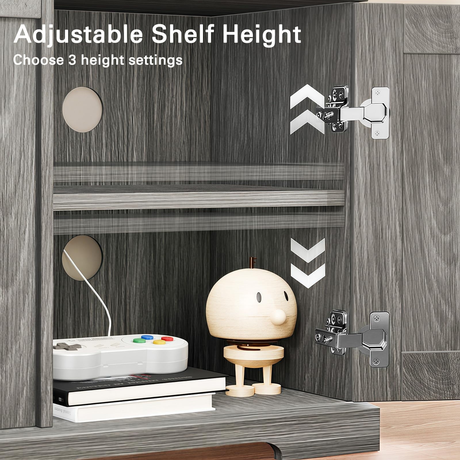 Spacious & 3 Adjustable Shelf: Features cable management holes and adjustable shelves with 3 height settings to accommodate various-sized items, keeping your space neat and organized.