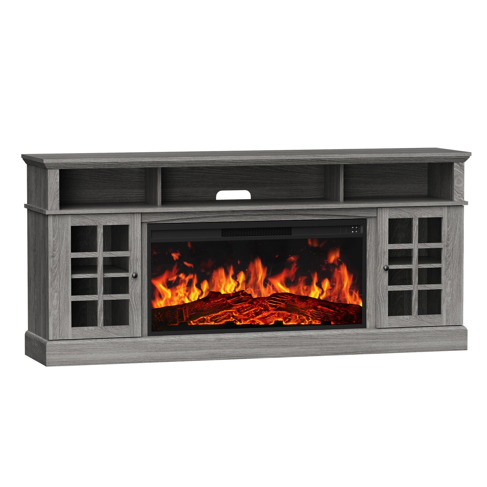 Electric Fireplace TV Stand up to 85" TVs, Farmhouse Entertainment Center wiht 36" Fireplace for Living Room, Gray