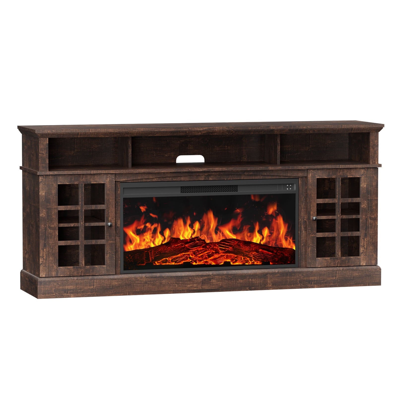 Electric Fireplace TV Stand up to 85" TVs, Farmhouse Entertainment Center wiht 36" Fireplace for Living Room, Vintage Brown