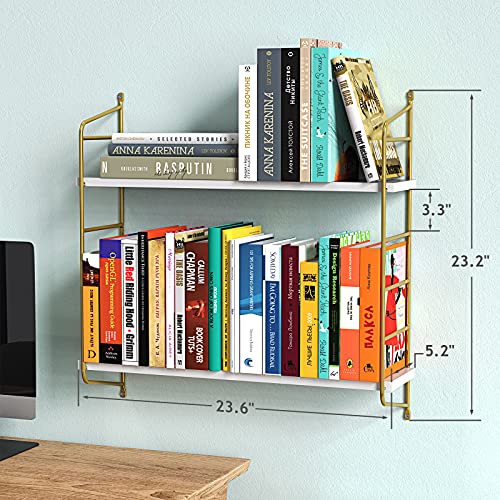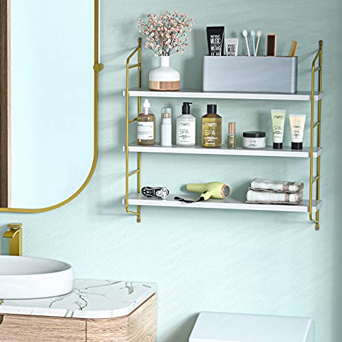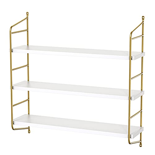 Floating Shelves Wall Mounted, Gold Wall Shelves for Living Room, Bedroom, Bathroom, Kitchen, 3 Tier Bookshelf 24 Inch White and Gold - AMFS15