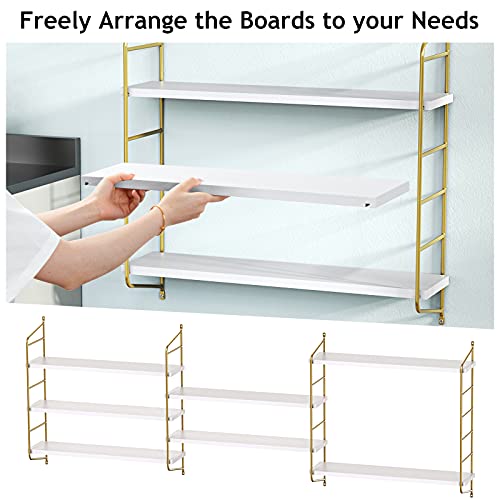 - Modern Luxury Style: White boards match with golden brackets presents a palace-like gorgeous visual experience, the floating shelves can increase a sense of high-ranking and luxury to your home, suitable for rooms with any decoration hue.