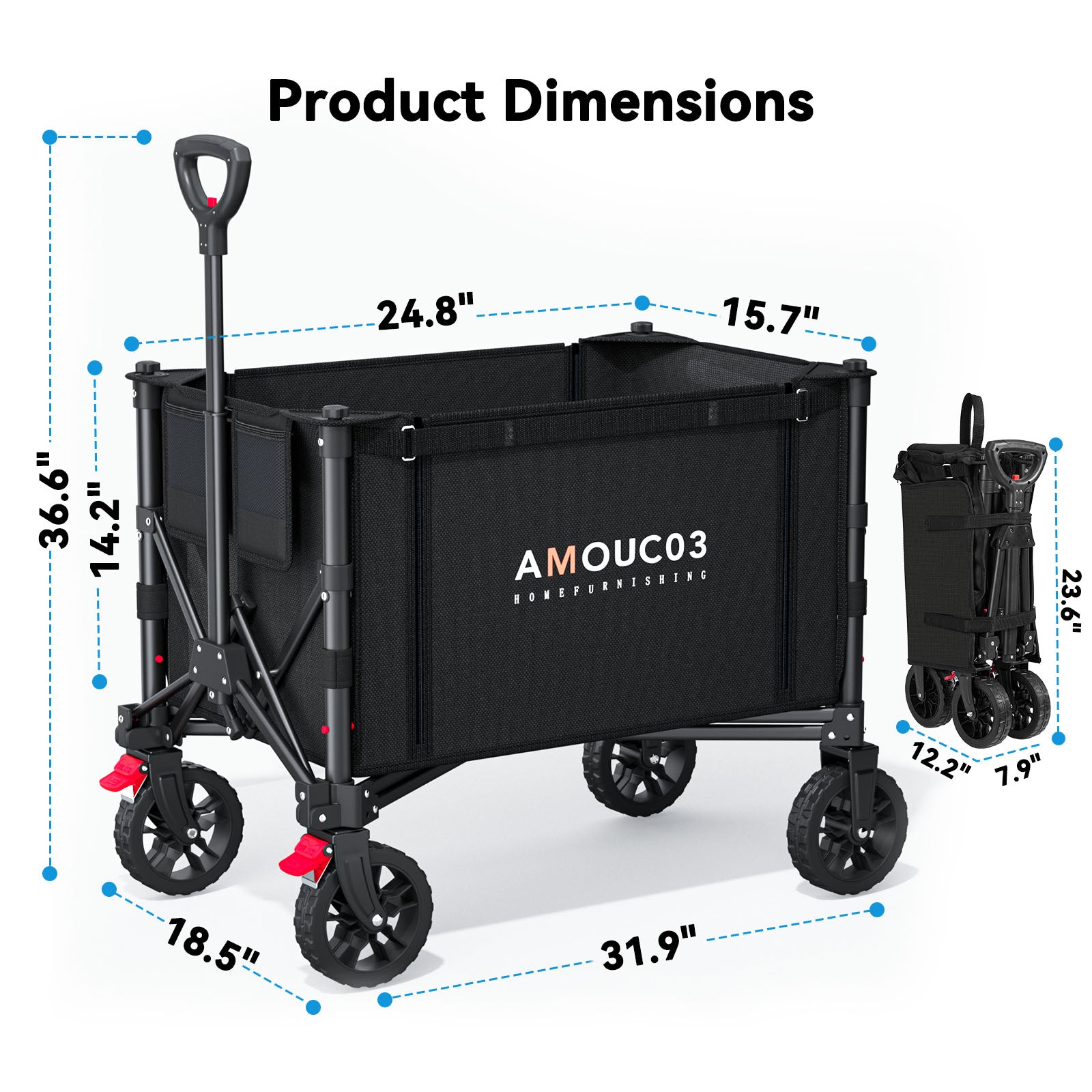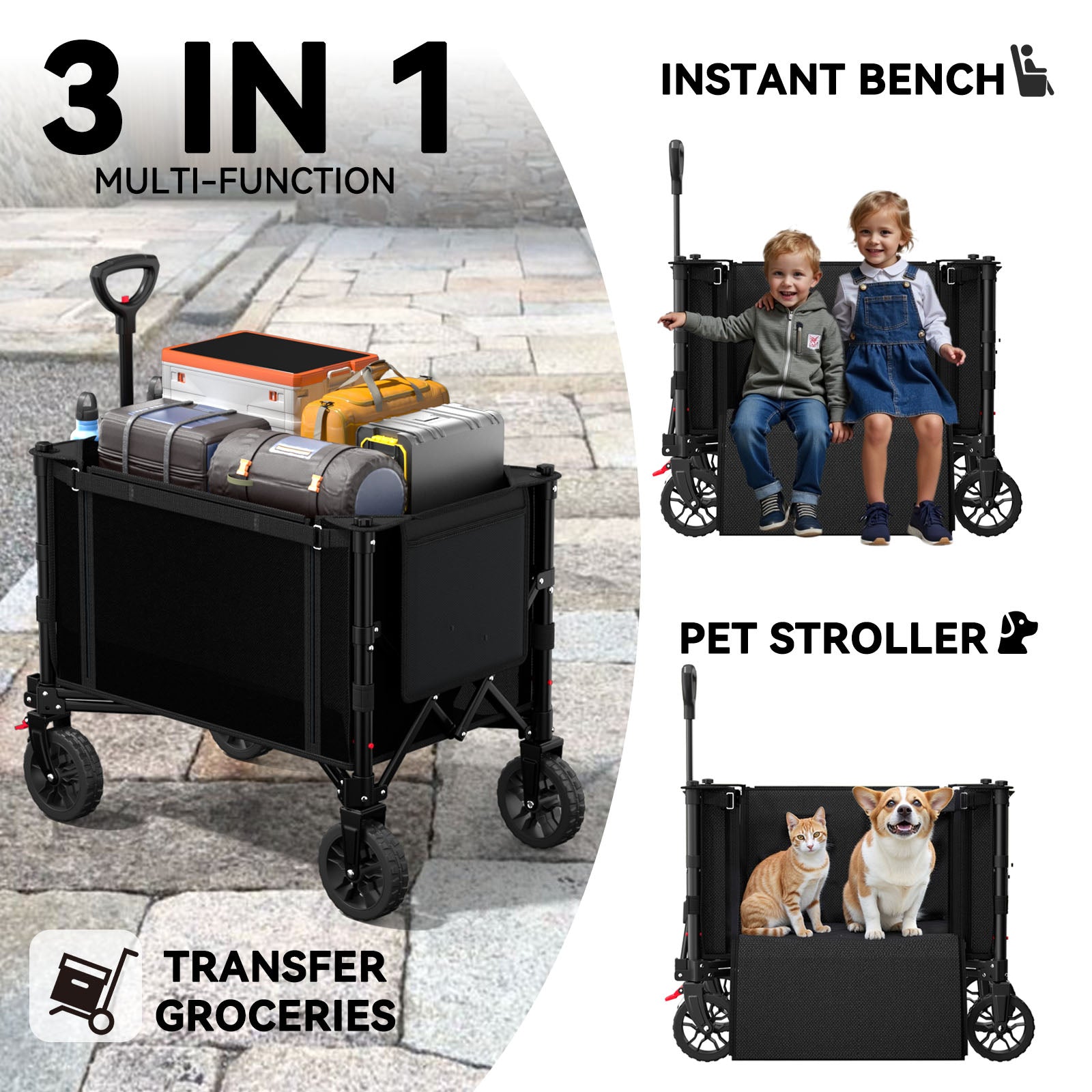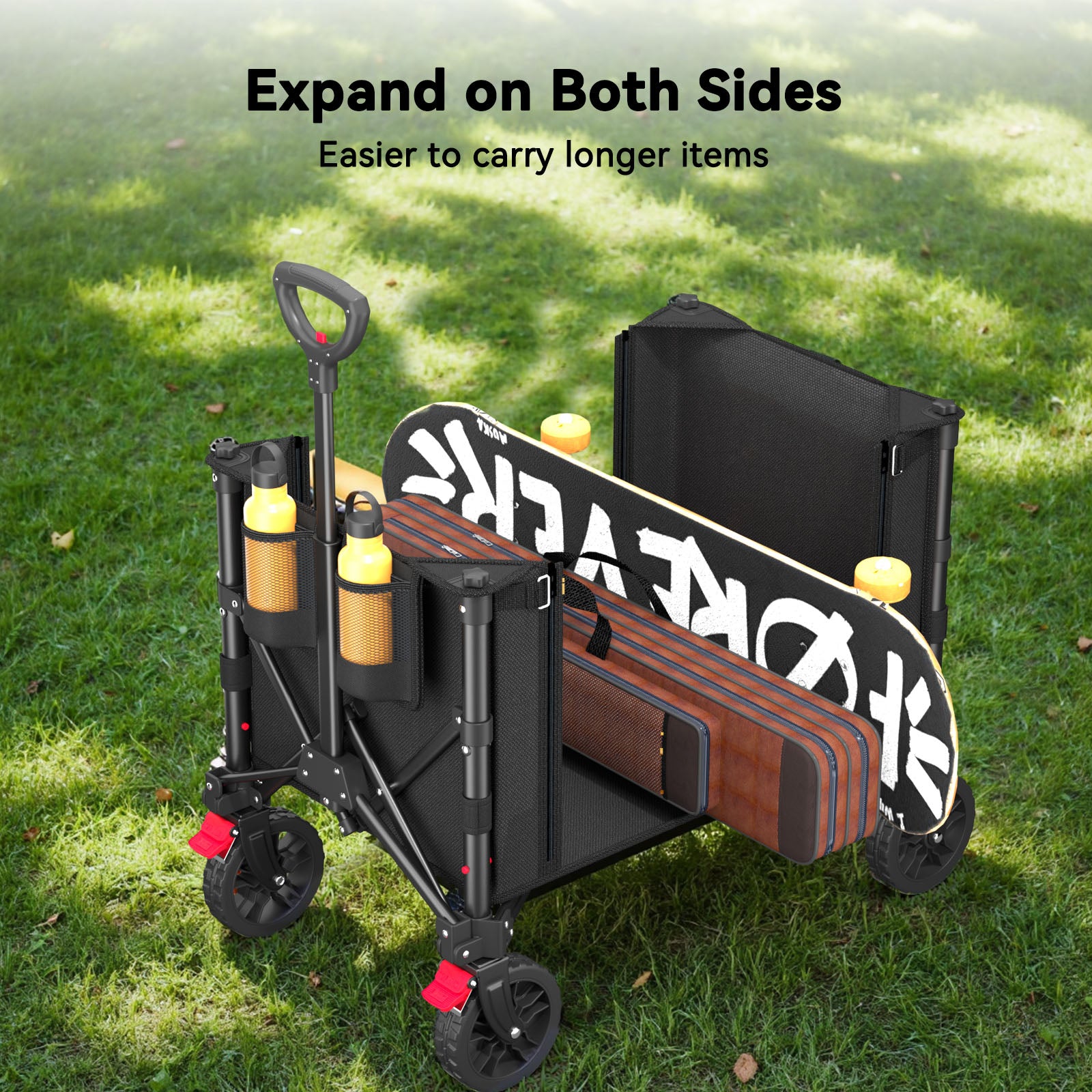 - 【Expandable Design】Just unfold the sides of this heavy-duty wagon to instantly create a larger storage area—perfect for bulky gear like fishing rods, camping equipment, or beach supplies. The smart expandable design gives you the flexibility to haul more when you need it, then fold it back down for easy storage. Great for outdoor adventures, tailgating, or everyday chores!