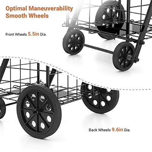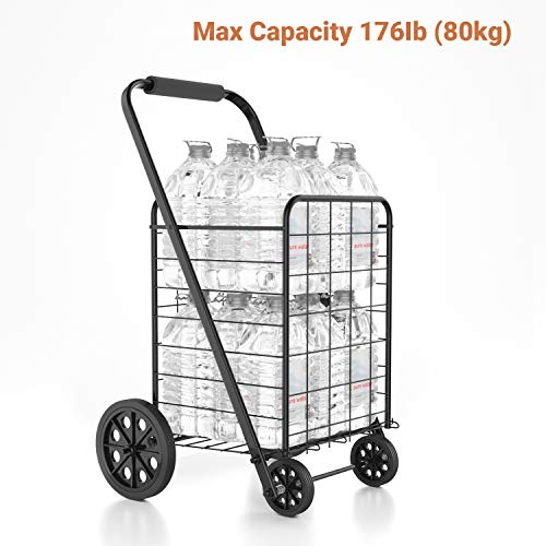 - Ultra-Sturdy Shopping Cart: Constructed of reinforced premium iron tube and steel base, and crafted with sophisticated welding technology. This grocery cart on wheels is ultra-sturdy to sustain frequent use, and is strong enough to effortlessly hold up to 176lbs.