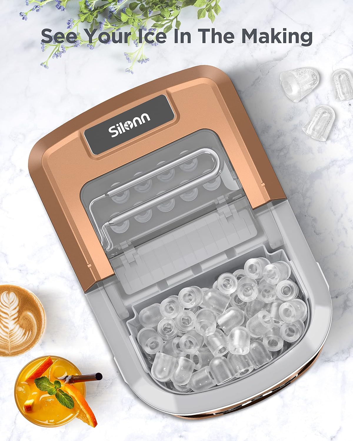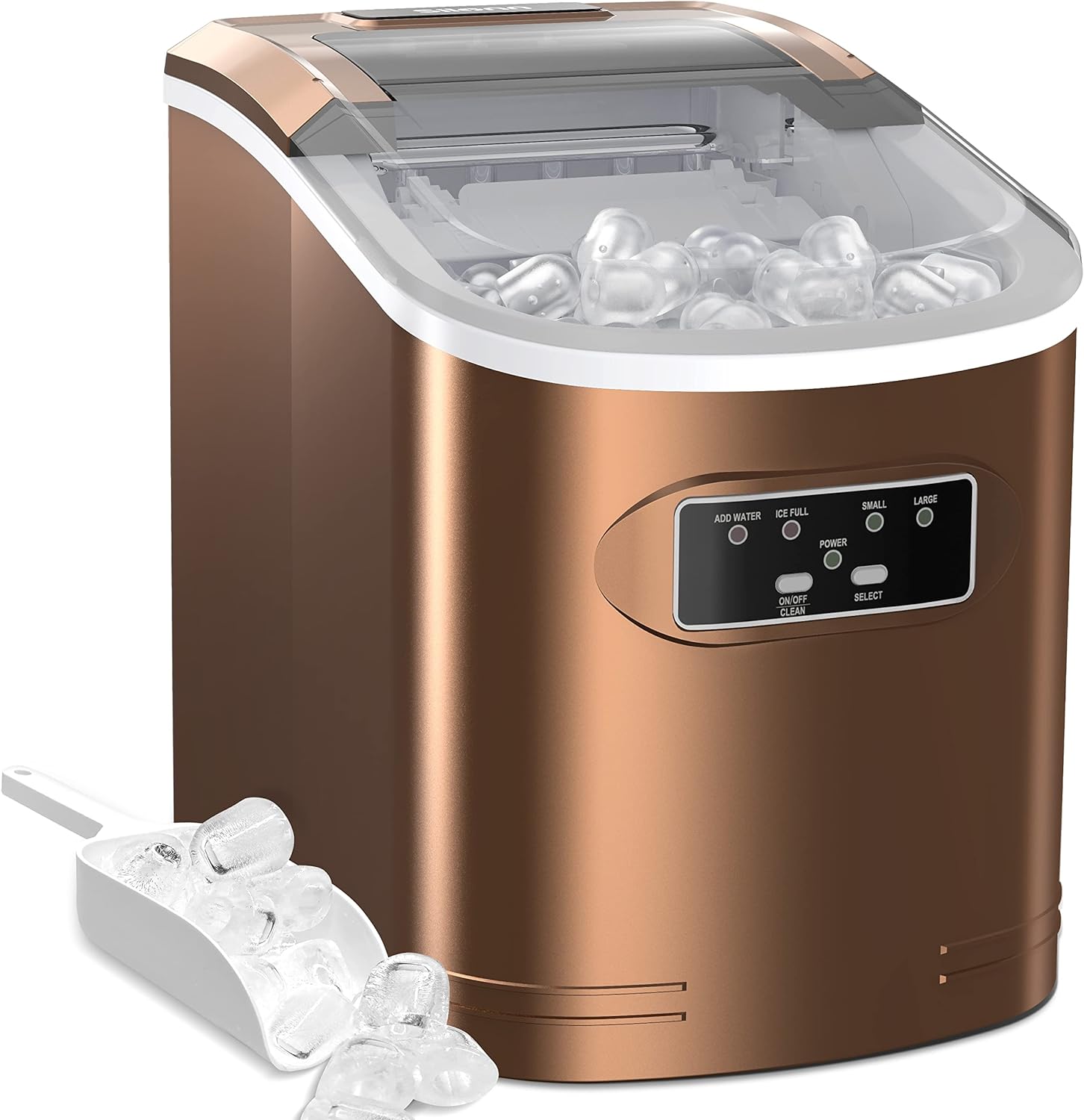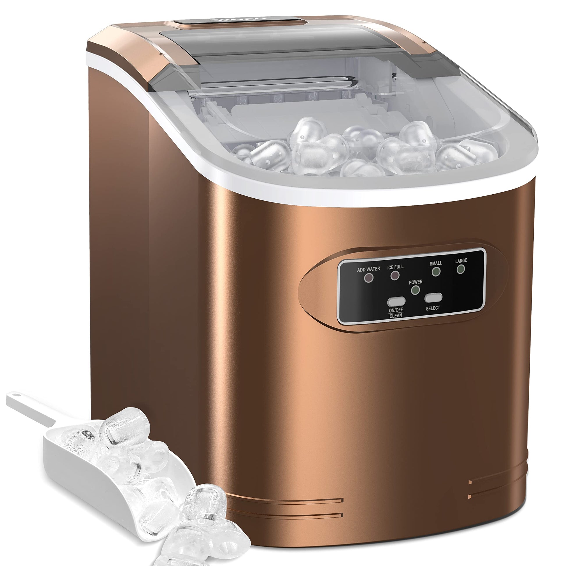 QUIET AND USER FRIENDLY: When making ice cubes, the noise is lower than 35dB, similar to a working refrigerator. The transparent lid allows you to monitor the ice capacity. The sensor automatically detects when ice is full and stops producing to prevent overflowing.