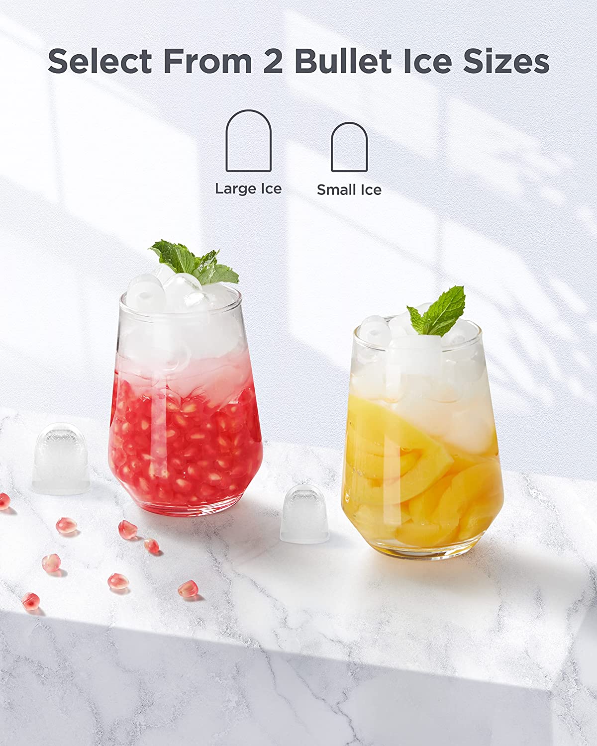 TWO SIZES OF ICE CUBES: You can make two different sizes of ice cubes. Small ice cubes can chill seafood and beer keeping it fresh and cold. Large ice cubes are more suitable for beverages to achieve a rapid cooling effect.