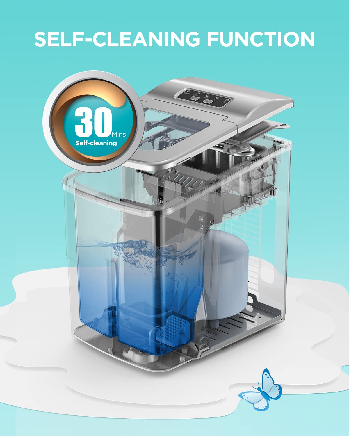 High Quality & Self-cleaning: Our ice machines are made of food-grade materials for your health and safety. Fill the water tank to the MAX line, press CLEAN button for 5s to enter the Self-cleaning mode when machine is in the status of "stand by". With Self-cleaning Function greatly facilitates your daily maintenance work. If you encounter any problems, please contact us for help.