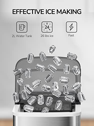 Ice Maker Machine for Countertop, 9 Bullet Ice Cubes Ready in 6 Minutes, 26lbs in 24Hrs Portable Ice Maker Machine Self-Cleaning, 2 Sizes of Bullet-Shaped Ice for Home Kitchen Office Bar Party