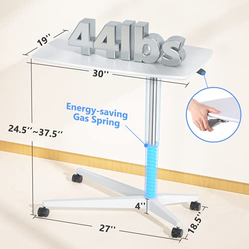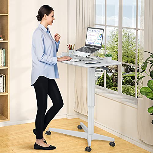 Mobile Standing Desk Height Adjustable Pneumatic Rolling Sit Stand Desk Small Laptop Desk Cart Riser Mobile Podium for Home Office & School