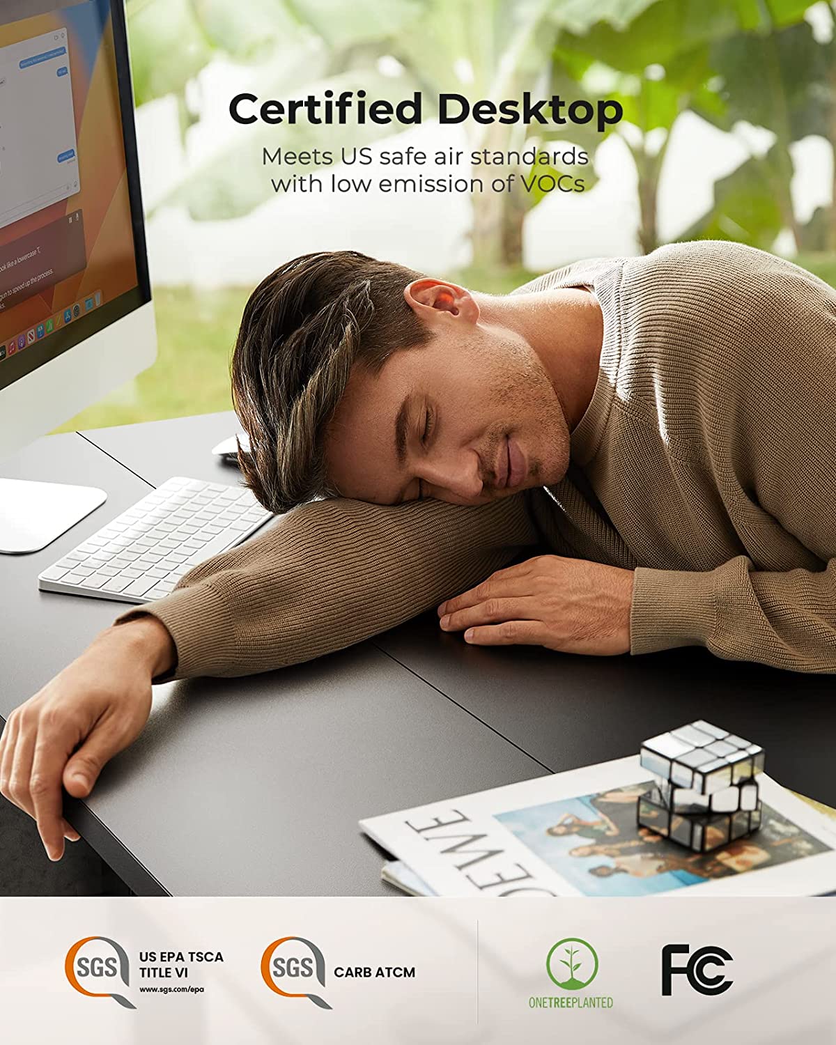 ๐ใ๐ช๐จ๐น๐ฉ ๐ช๐๐๐๐๐๐๐๐ ๐ซ๐๐๐๐๐๐ใ๏ผ The desktop of electric desk with storage bag is CARB certified and has significantly reduced formaldehyde and other VOC emissions, making them not only compliant with meeting U.S. federal and state safe air standards, but also safer and more skin-friendly for everyday use. As the sit stand desk comes with a child safety lock function, anti-collision function and overheat protection function. Keep safe for pets, kids and adults in the whole life