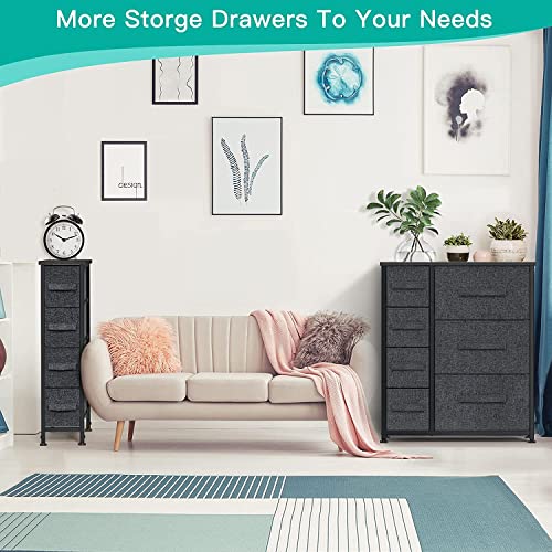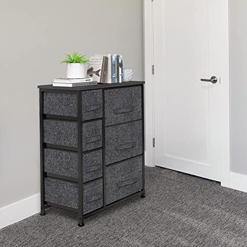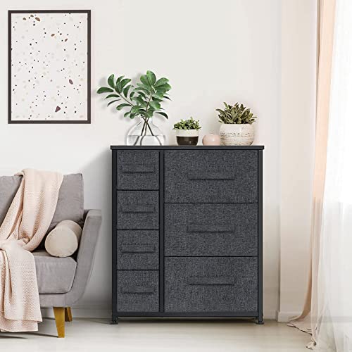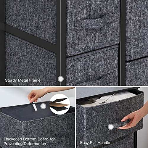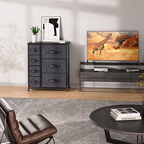 Storage Tower with 7 Drawers Fabric Dresser Drawer Organizer for Bedroom with Steel Frame, Wood Top, Easy Pull Drawer for Closet, Hallway, Entryway, Nursery Room (Black)