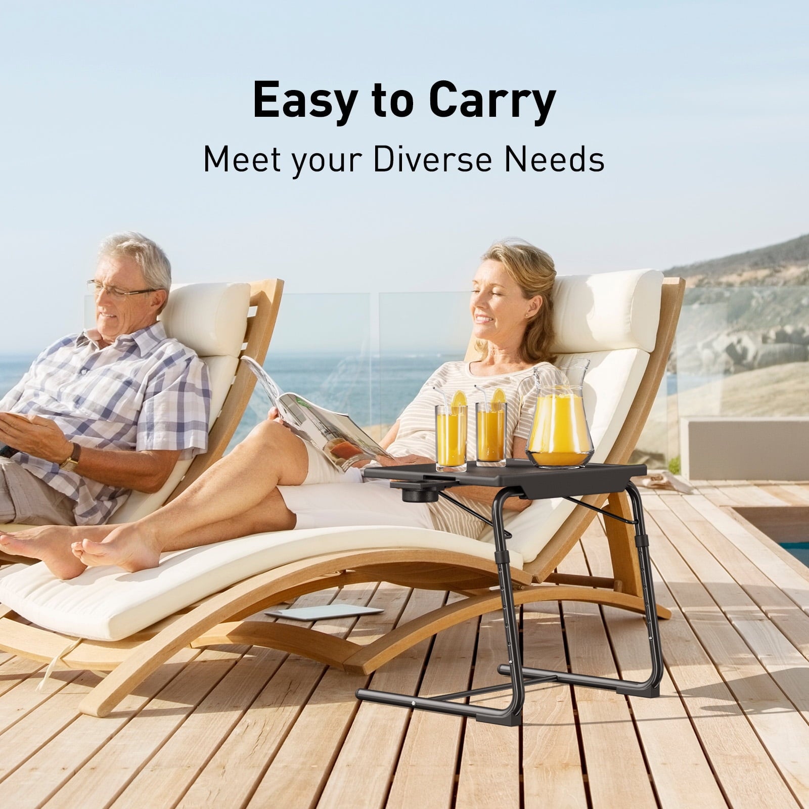 CHITOOMA Adjustable, Portable, Foldable TV Tray with Cup Holders, Black