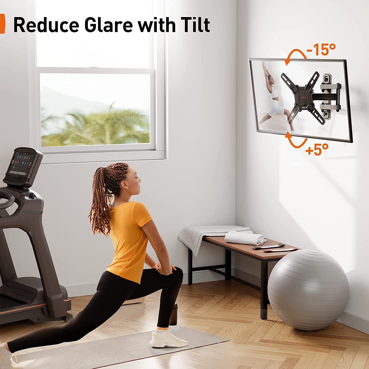 Maximize your space with the Full Motion TV Wall Mount, designed with a single-stud design that's perfect for corner installations where furniture space is limited. Install the mount in your bedroom, gym, office, kitchen, and more, and take advantage of vertical space without sacrificing style or practicality.