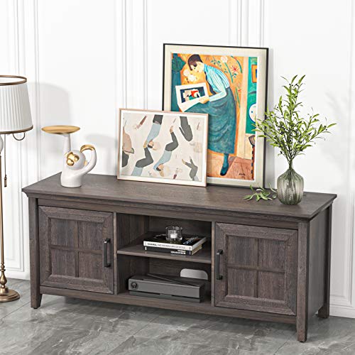 Wood TV Stand for TVs up to 65inch Rustic Media Console Table with Adjustable Storage Cabinet Entertainment Center for Living Room Farmhouse TV Table- APRTS04B
