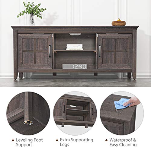 - FARMHOUSE STYLE: Whether your aesthetic is modern or retro, this media console table will add a touch of rustic farmhouse style to your home. With design features including real wood material, quiet hinges, and a moisture-resistant surface to help prevent staining and scratching, the unit is a great combination of luxury and value.